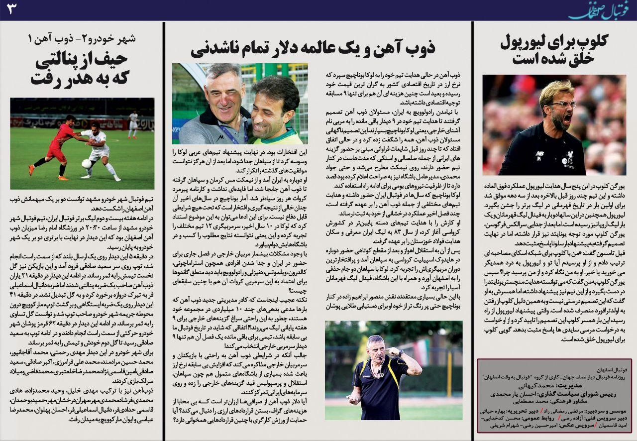 روزنامه الکترونیک فوتبال اصفهان دوشنبه9 تیر 99