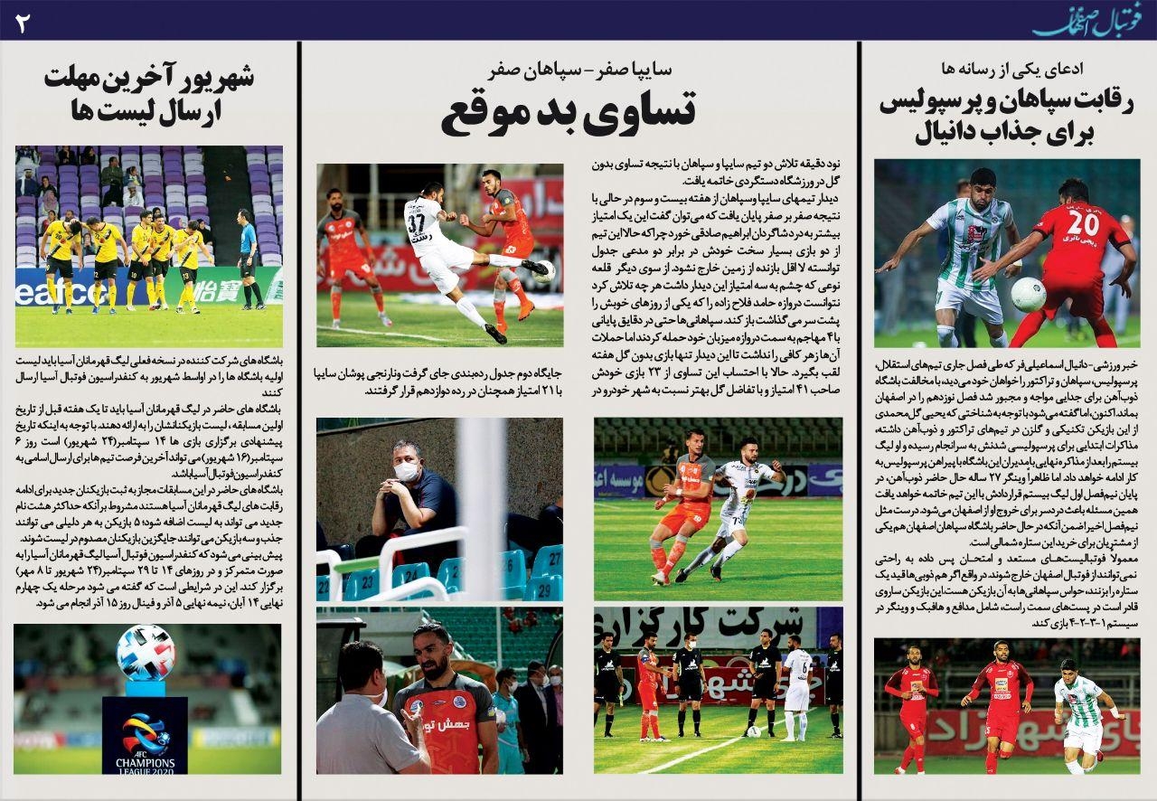 روزنامه الکترونیک فوتبال اصفهان دوشنبه 16 تیر 99