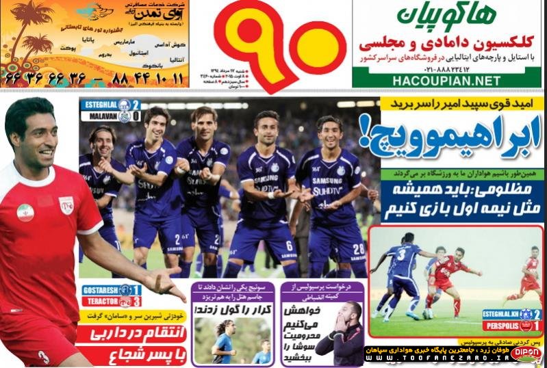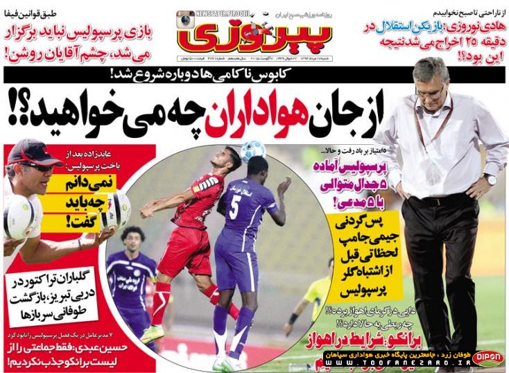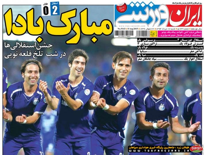 مطبوعات ورزشی کشور روزنامههای صبح شنبه، 17 مرداد شامل صفحه یک روزنامههای: گل، ابرار ورزشی، استقلال جوان، پیروزی، نود، ایران ورزشی، هدف