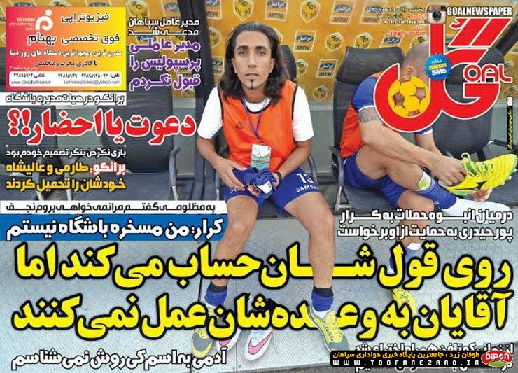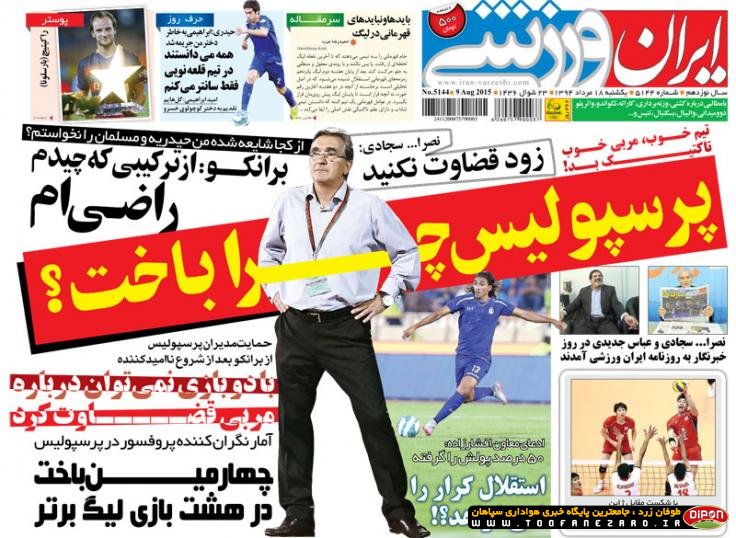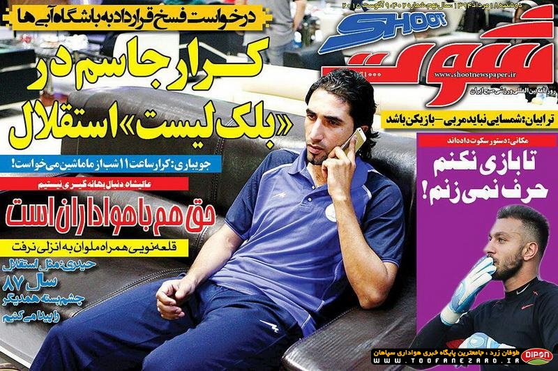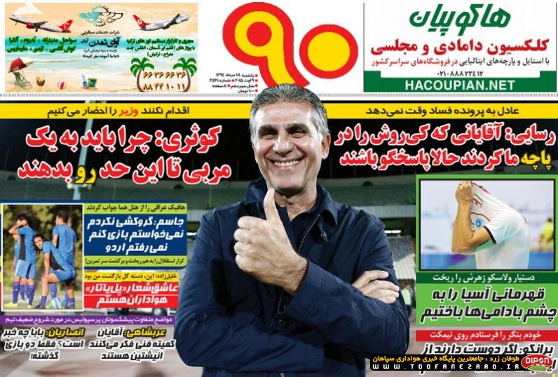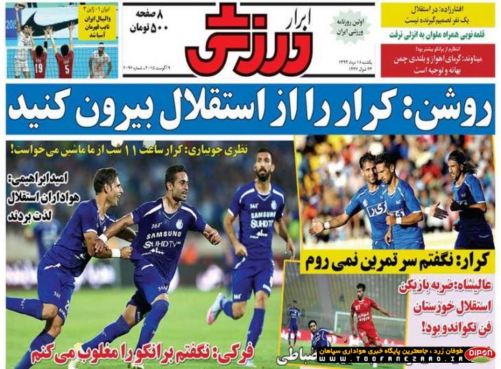 مطبوعات ورزشی کشور روزنامههای صبح یکشنبه، 18 مرداد شامل صفحه یک روزنامههای: گل، ابرار ورزشی، استقلال جوان، پیروزی، نود، ایران ورزشی، هدف