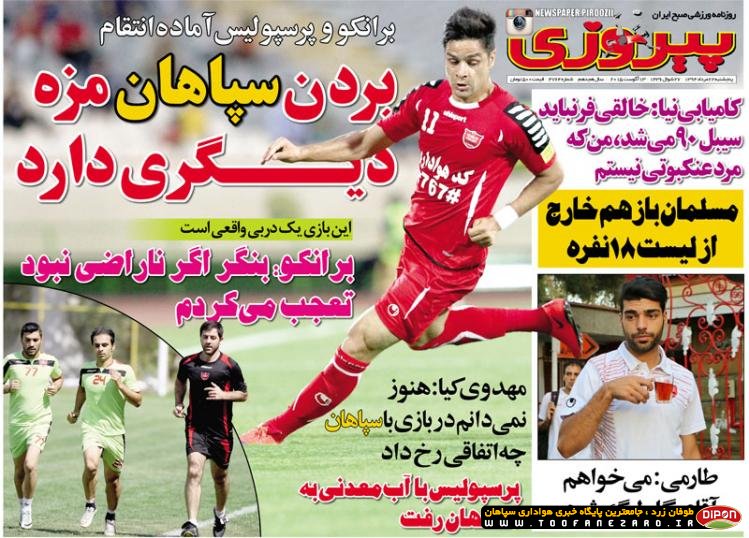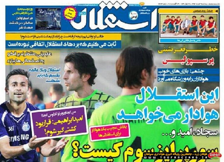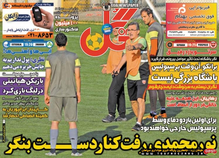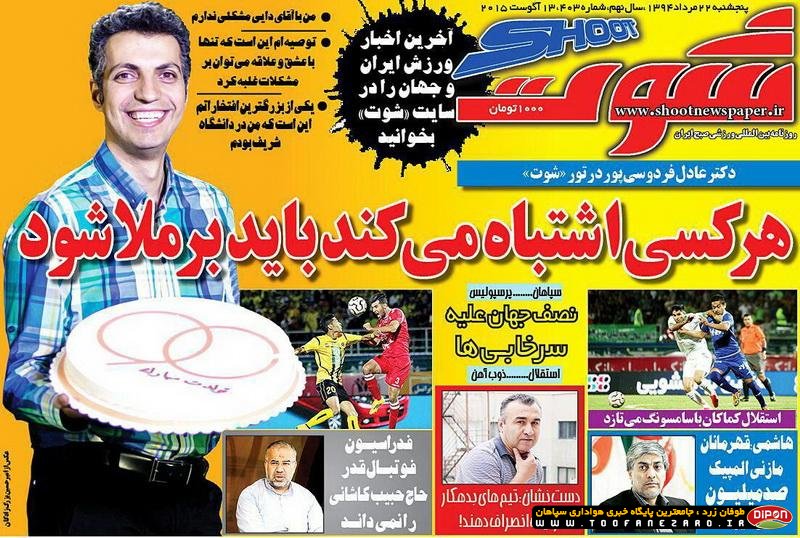 مطبوعات ورزشی کشور روزنامههای صبح پنجشنبه، 22 مرداد شامل صفحه یک روزنامههای: گل، ابرار ورزشی، خبر ورزشی، استقلال جوان، پیروزی، ایران ورزشی، هدف، شوت