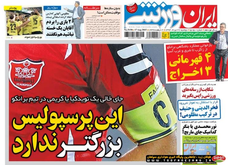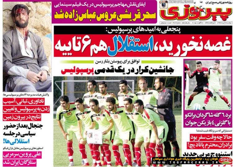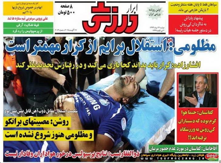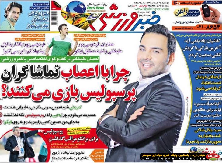 مطبوعات ورزشی کشور روزنامههای صبح دوشنبه، 26 مرداد شامل صفحه یک روزنامههای: گل، خبر ورزشی، ابرار ورزشی، استقلال جوان، پیروزی، شوت، هدف، ایران ورزشی