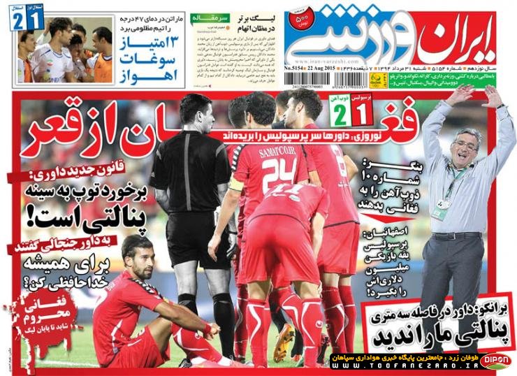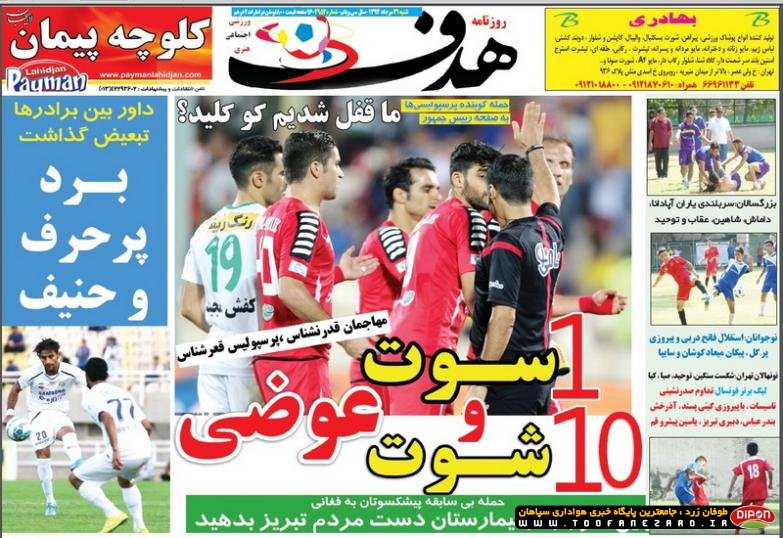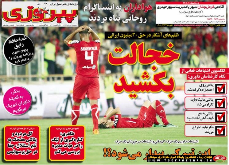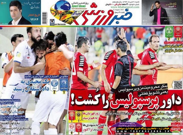 مطبوعات ورزشی کشور روزنامههای صبح شنبه، 31 مرداد شامل صفحه یک روزنامههای: گل، خبر ورزشی، ابرار ورزشی، استقلال جوان، پیروزی، شوت، هدف، ایران ورزشی
