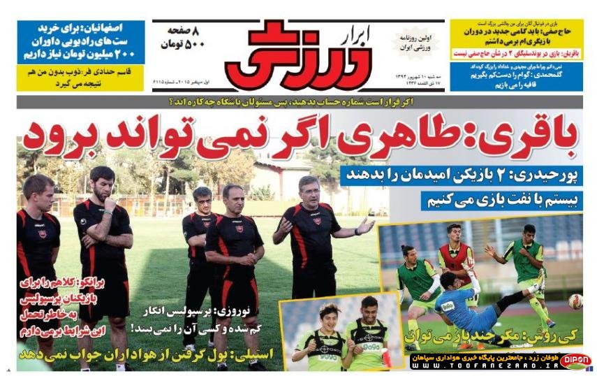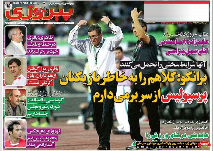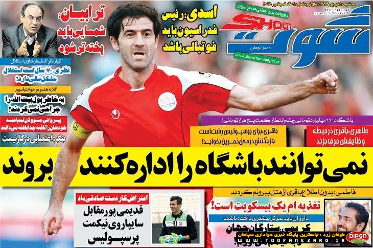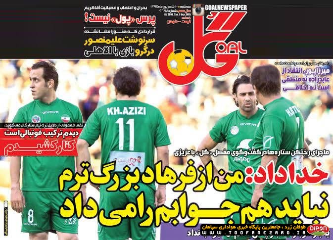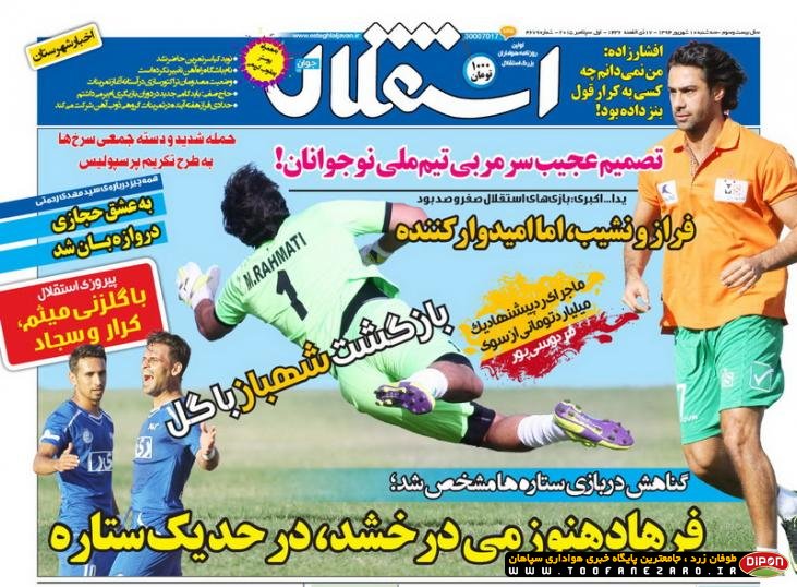 مطبوعات ورزشی کشور روزنامههای صبح سه شنبه، 10 شهریور شامل صفحه یک روزنامههای: خبر ورزشی، گل، هدف، ابرار ورزشی، پیروزی، استقلال جوان، ایران ورزشی، شوت