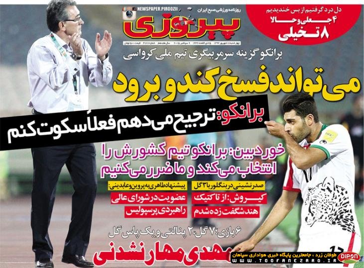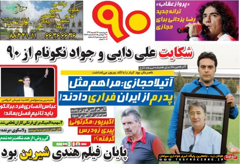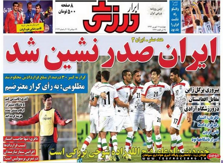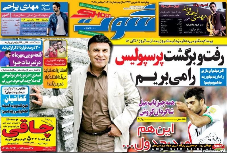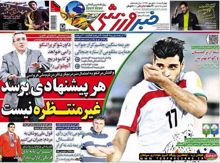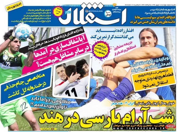 مطبوعات ورزشی کشور روزنامه های صبح چهارشنبه، 18شهریور شامل صفحه یک روزنامههای: گل، خبر ورزشی، ابرار ورزشی، پیروزی، استقلال جوان، نود، شوت، هدف، ایران ورزشی