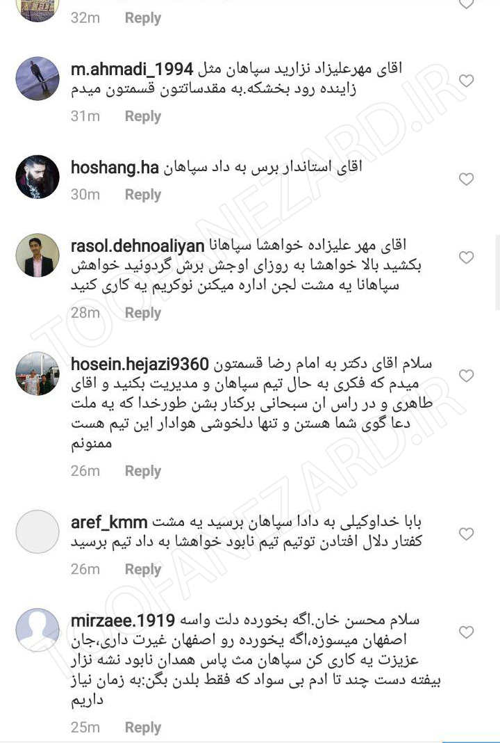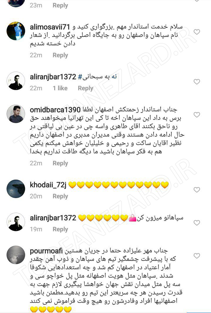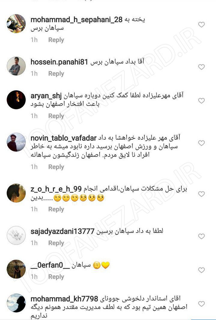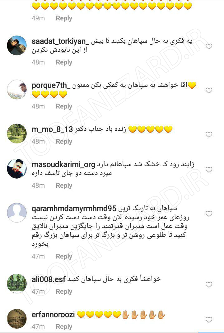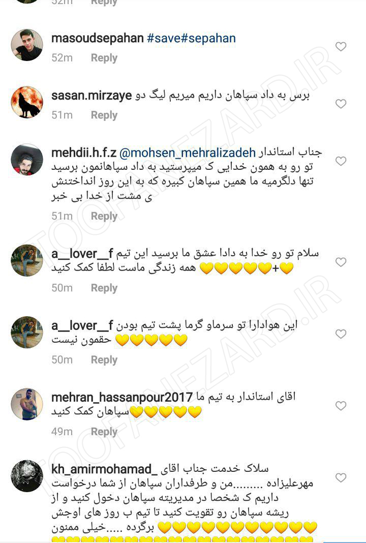 به گزارش پایگاه خبری طوفان زرد سپاهانی ها پس از شکست تیم محبوبشان در دربی اصفهان با مراجعه به صفحه رسمی استاندار اصفهان، خواستار ورود وی به مشکلات این تیم و تغییر شرایط فعلی شدند.
