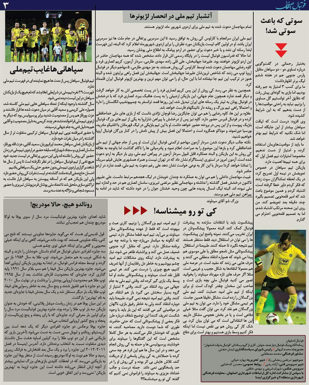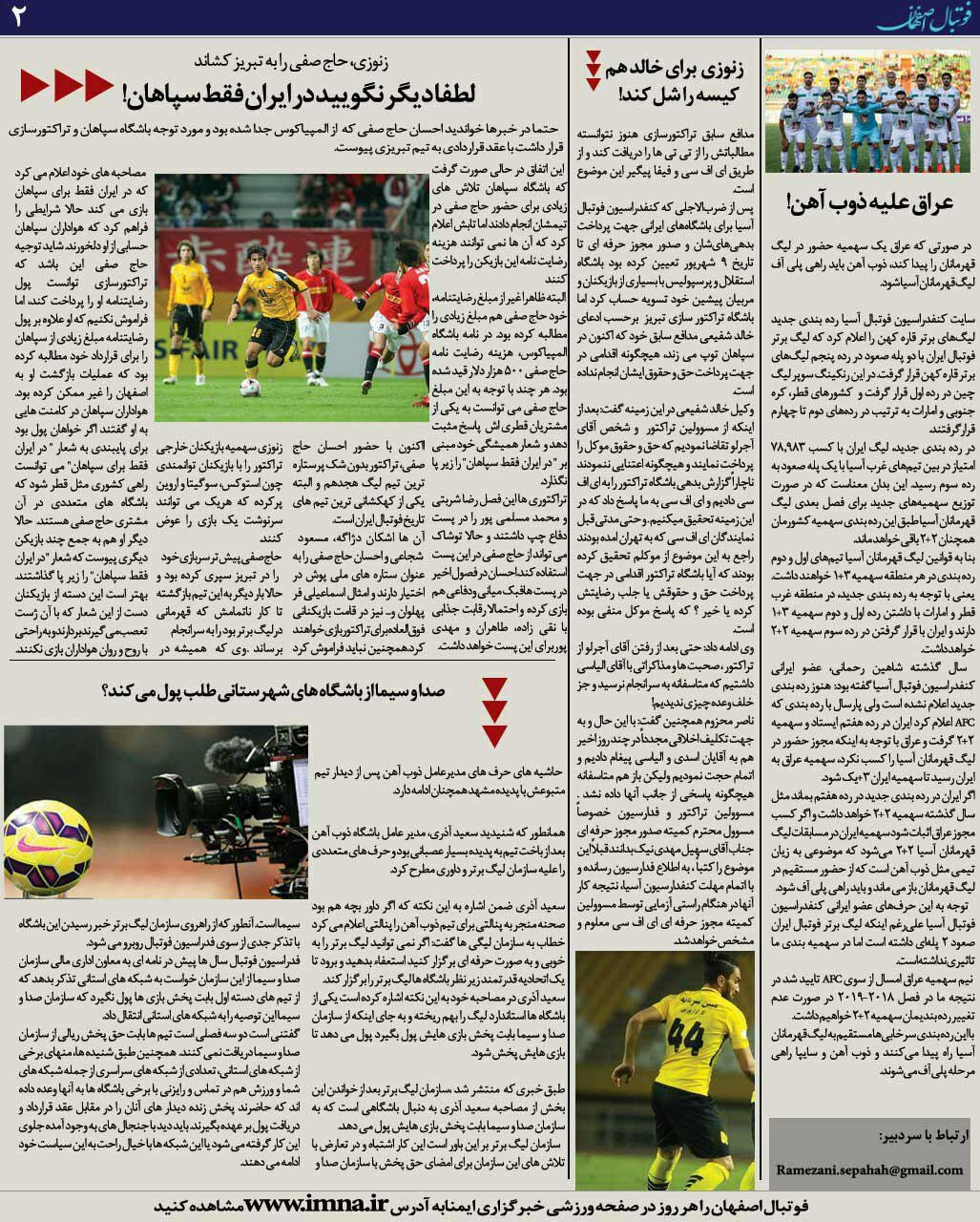 شماره5 روزنامه الکترونیک فوتبال اصفهان دوشنبه 12 شهریور روزنامه الکترونیک فوتبال اصفهان دوشنبه 12 شهریور 97 با محوریت پوشش اخبار تیم های فوتبال سپاهان و ذوب آهن منتشر شد.