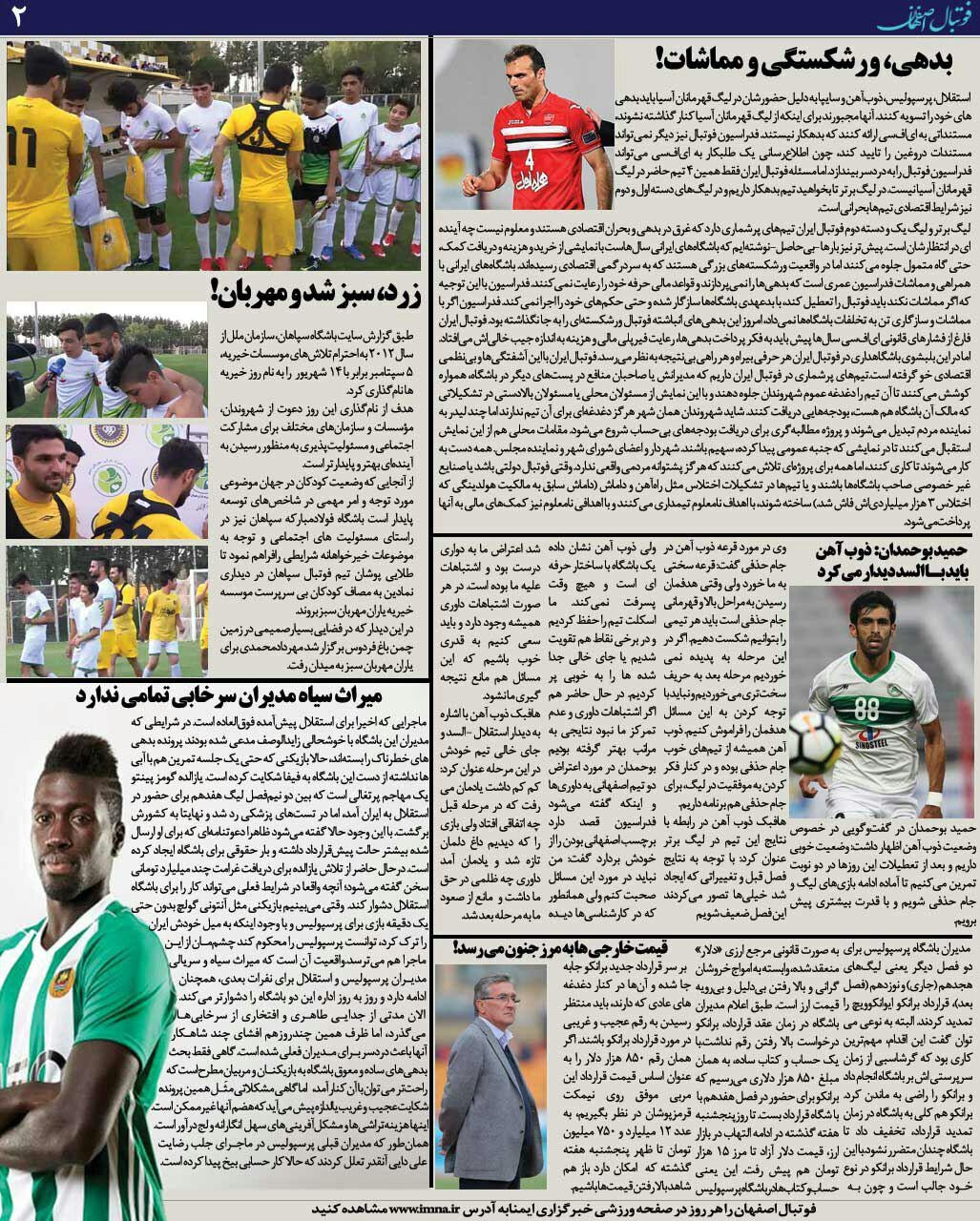 شماره9 روزنامه الکترونیک فوتبال اصفهان شنبه 17 شهریور روزنامه الکترونیک فوتبال اصفهان شنبه 17 شهریور97 با محوریت پوشش اخبار تیم های فوتبال سپاهان و ذوب آهن منتشر شد.