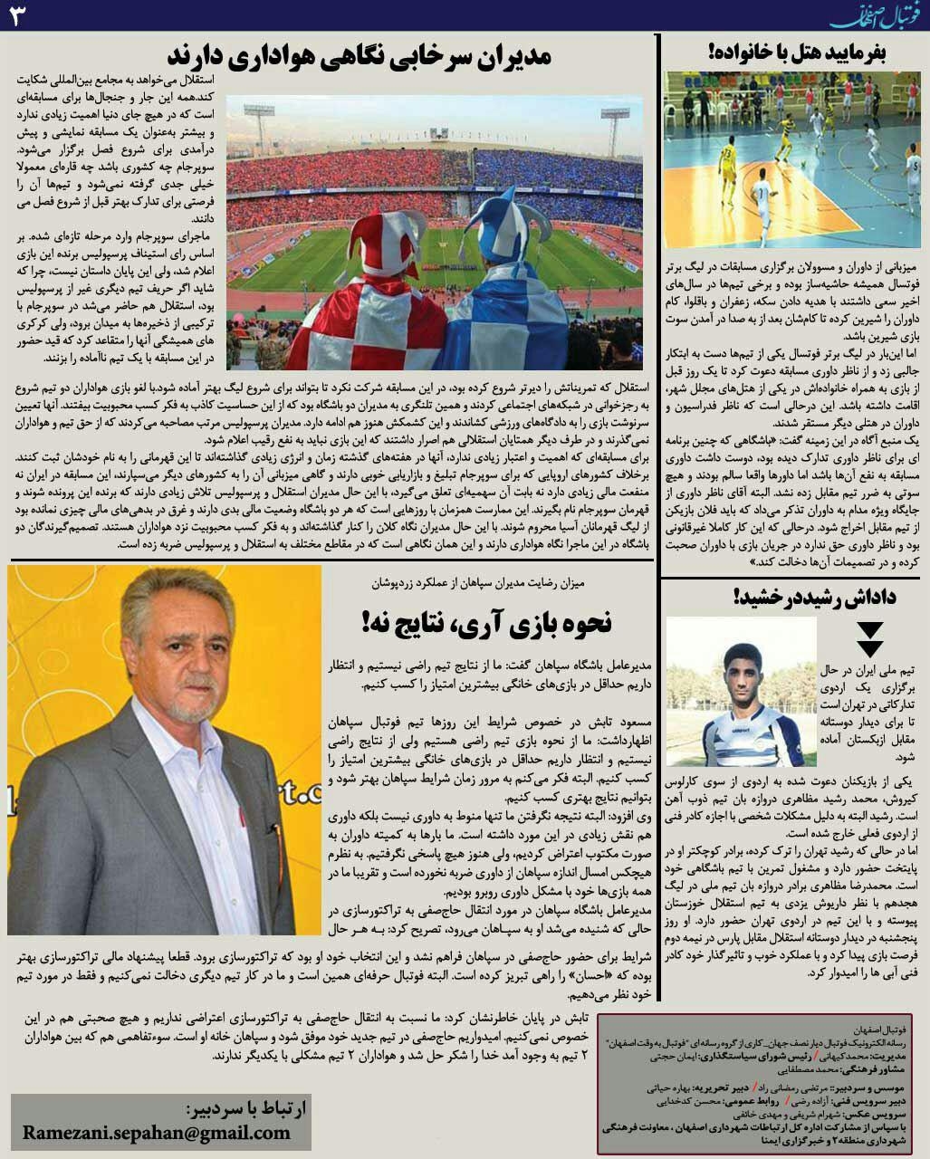 شماره10 روزنامه الکترونیک فوتبال اصفهان یکشنبه 18 شهریور روزنامه الکترونیک فوتبال اصفهان یکشنبه 18 شهریور97 با محوریت پوشش اخبار تیم های فوتبال سپاهان و ذوب آهن منتشر شد.