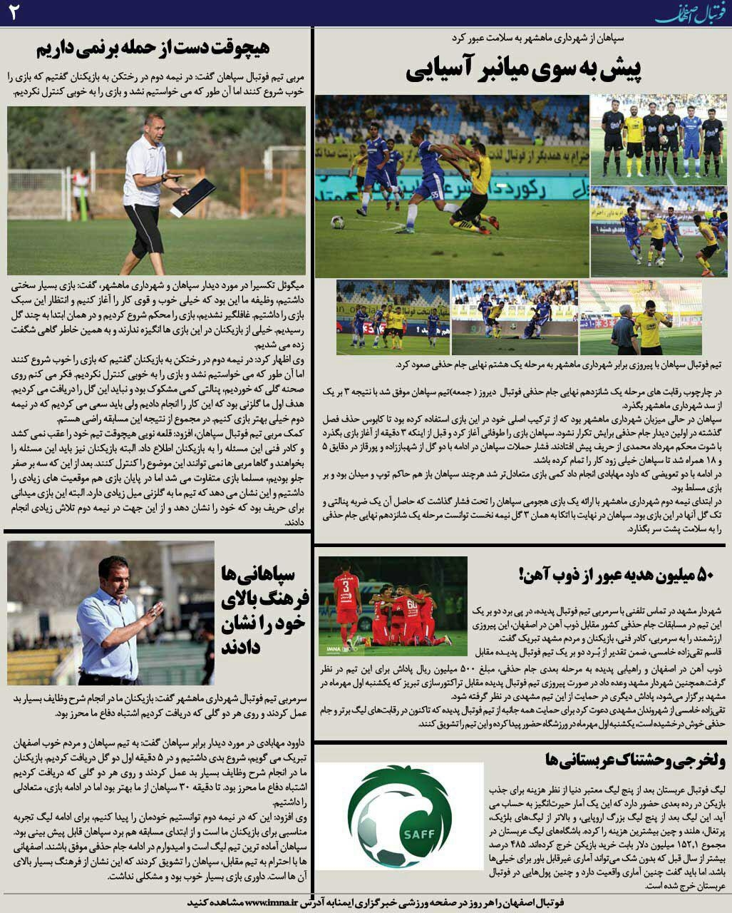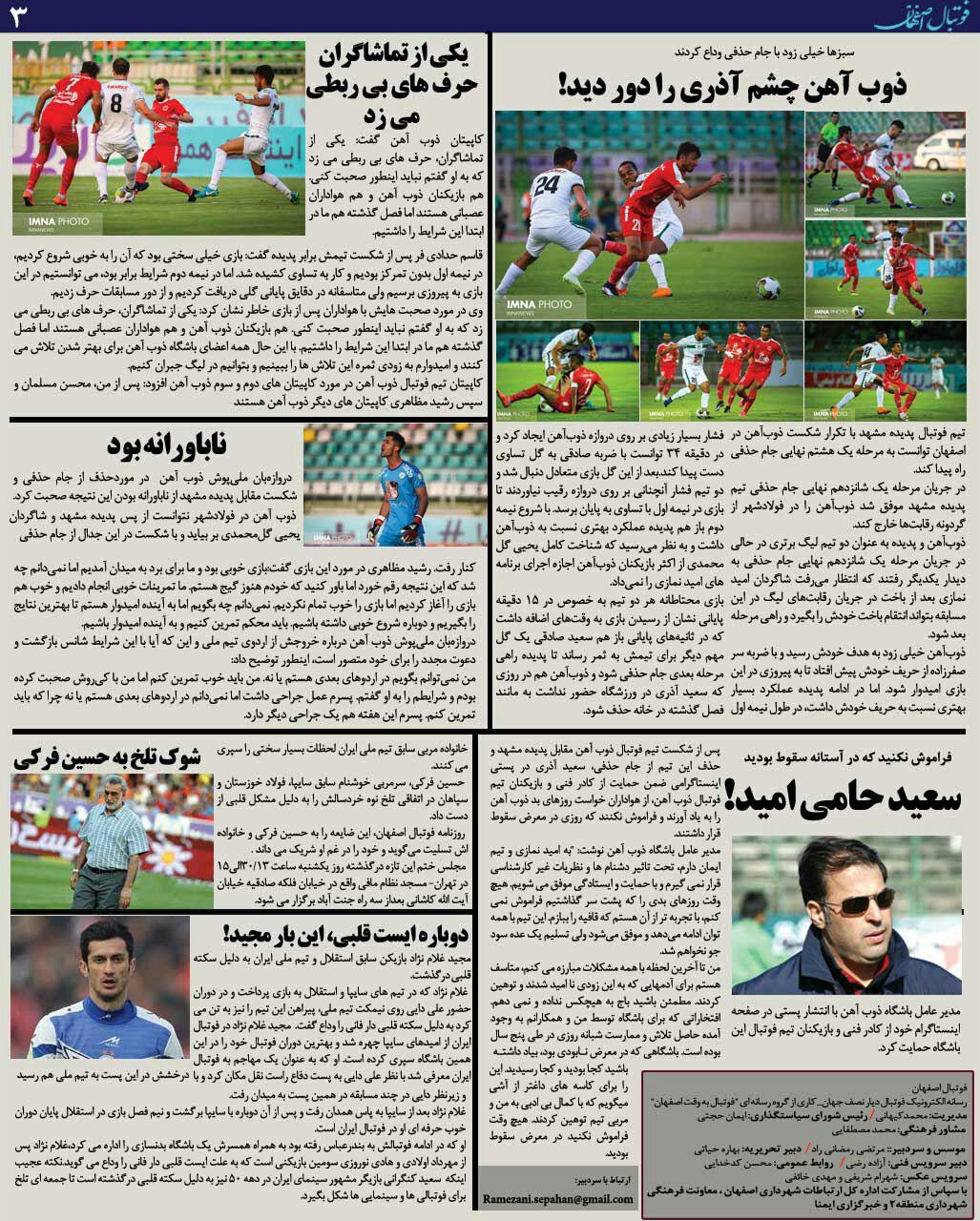 شماره15 روزنامه الکترونیک فوتبال اصفهان شنبه 24 شهریور روزنامه الکترونیک فوتبال اصفهان شنبه 24 شهریور97 با محوریت پوشش اخبار تیم های فوتبال سپاهان و ذوب آهن منتشر شد.