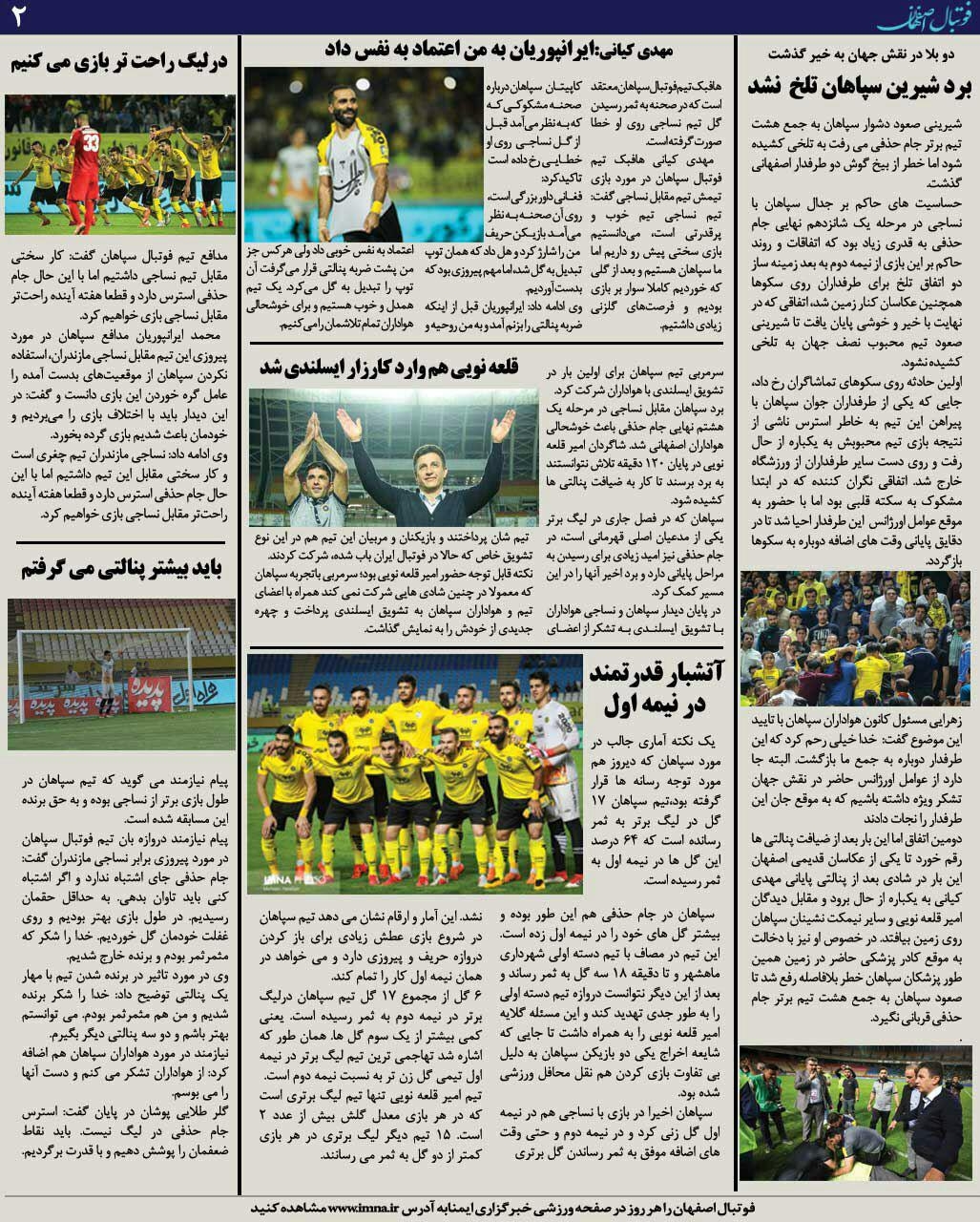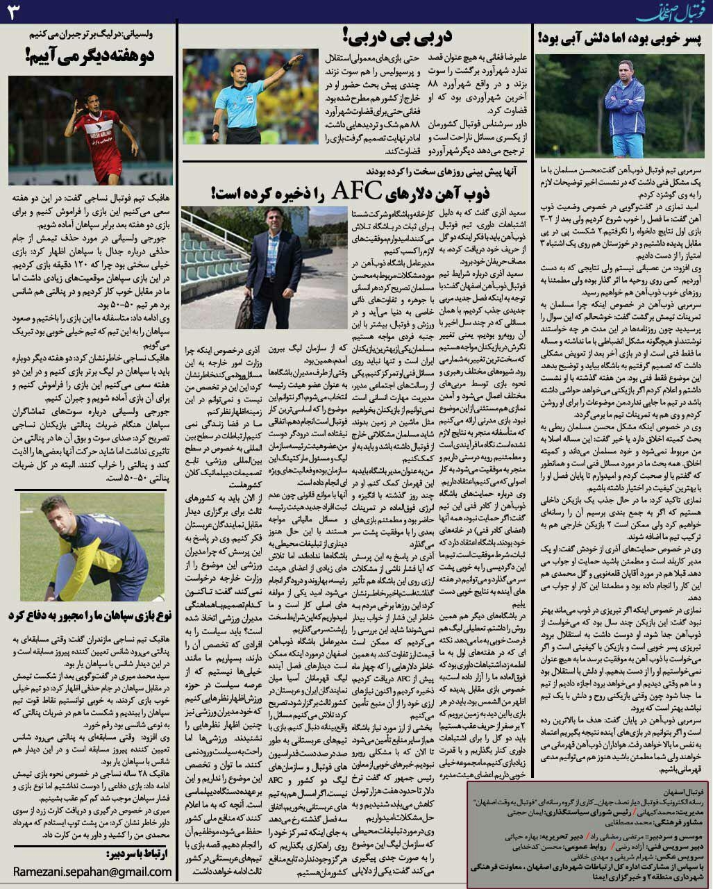 شماره 32 روزنامه الکترونیک فوتبال اصفهان یکشنبه 15 مهر روزنامه الکترونیک فوتبال اصفهان یکشنبه 15 مهر97 با محوریت پوشش اخبار تیم های فوتبال سپاهان و ذوب آهن منتشر شد.