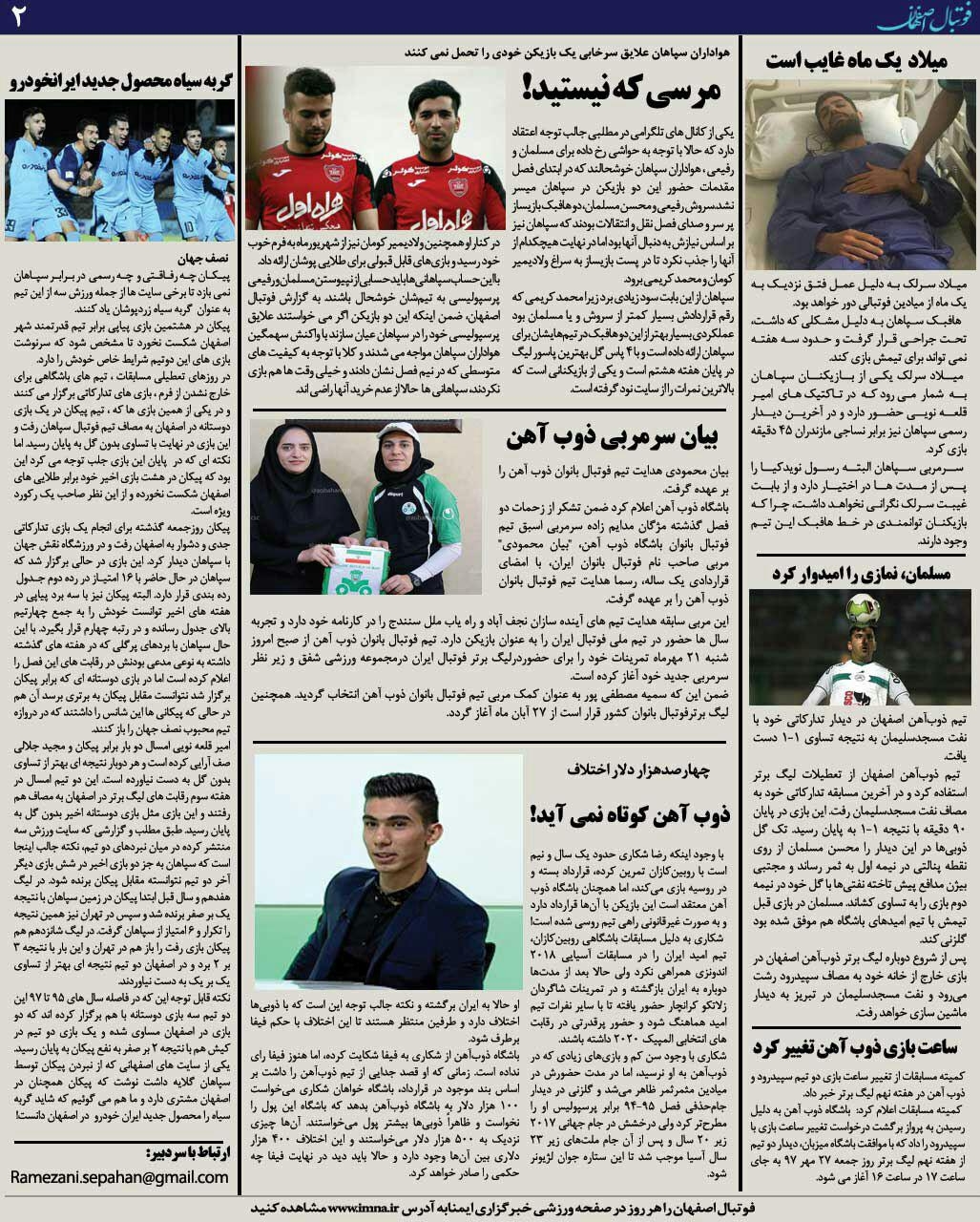 شماره39 روزنامه الکترونیک فوتبال اصفهان دوشنبه 23 مهر روزنامه الکترونیک فوتبال اصفهان دوشنبه 23 مهر97 با محوریت پوشش اخبار تیم های فوتبال سپاهان و ذوب آهن منتشر شد.