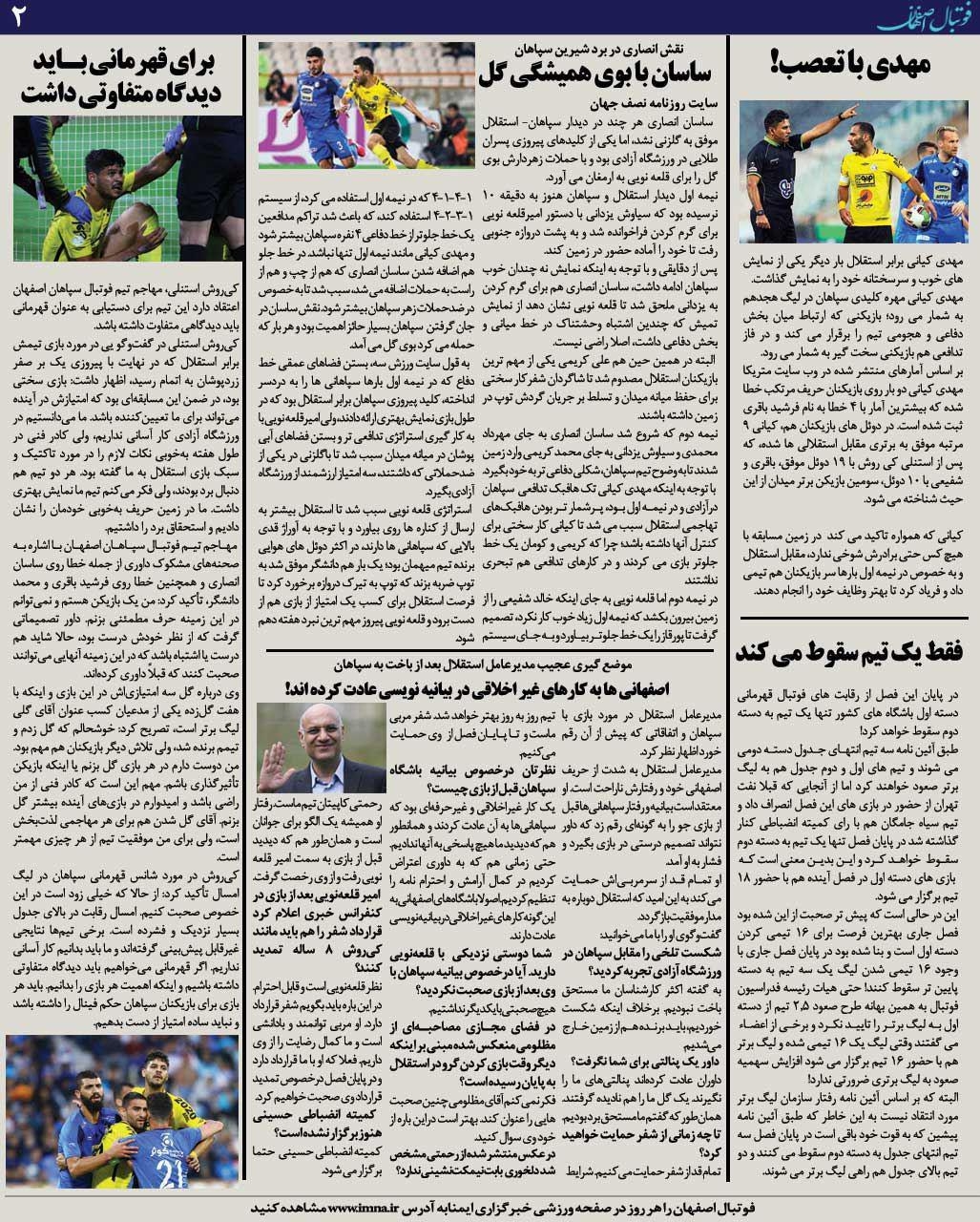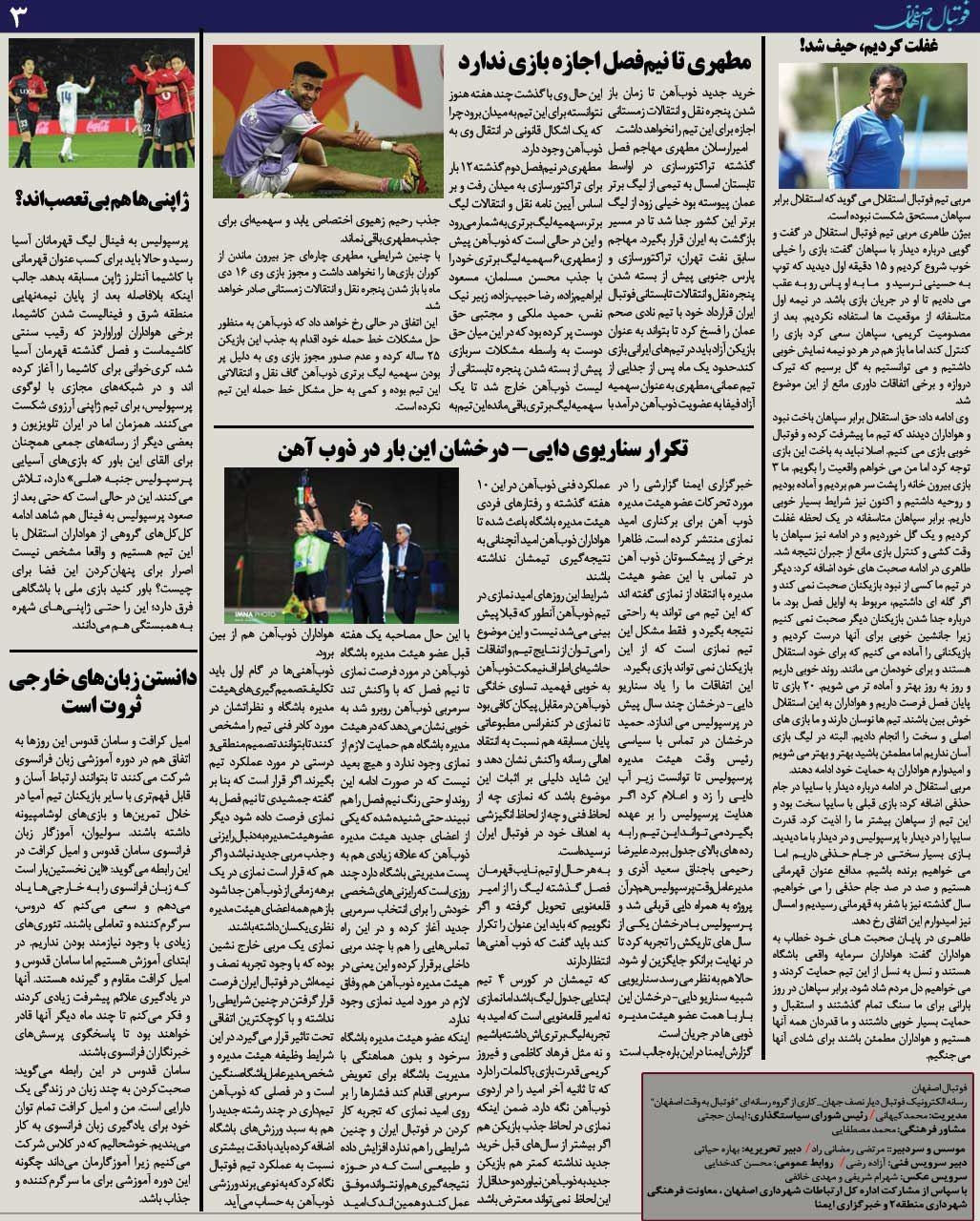 شماره50 روزنامه الکترونیک فوتبال اصفهان دوشنبه 7 آبان97 روزنامه الکترونیک فوتبال اصفهان دوشنبه 7 آبان97 با محوریت پوشش اخبار تیم های فوتبال سپاهان و ذوب آهن منتشر شد.