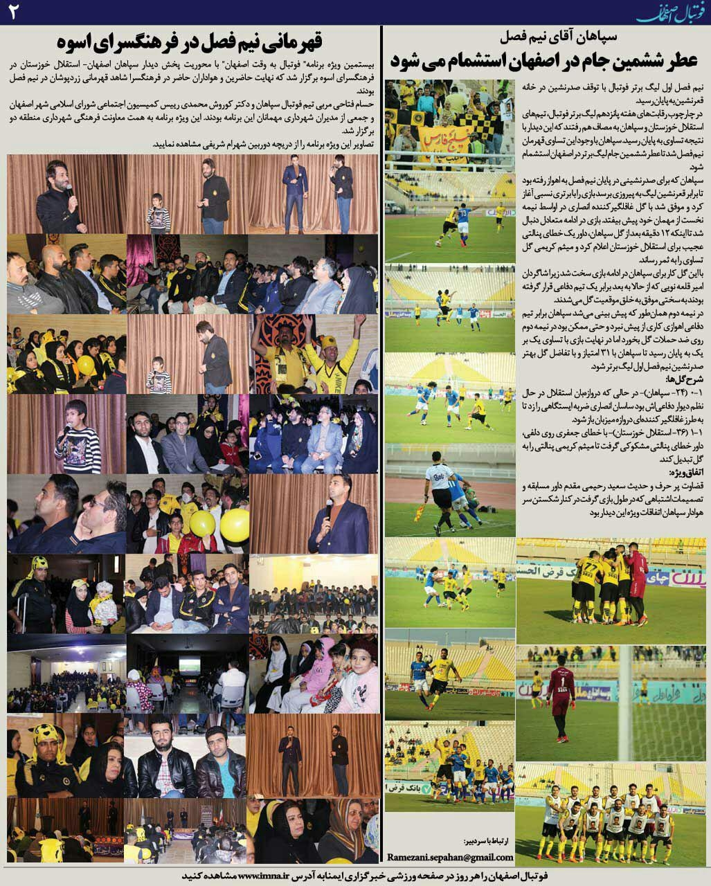 شماره86 روزنامه الکترونیک فوتبال اصفهان یکشنبه25 آذر97 روزنامه الکترونیک فوتبال اصفهان یکشنبه25 آذر97 با محوریت پوشش اخبار تیم های فوتبال سپاهان و ذوب آهن منتشر شد.
