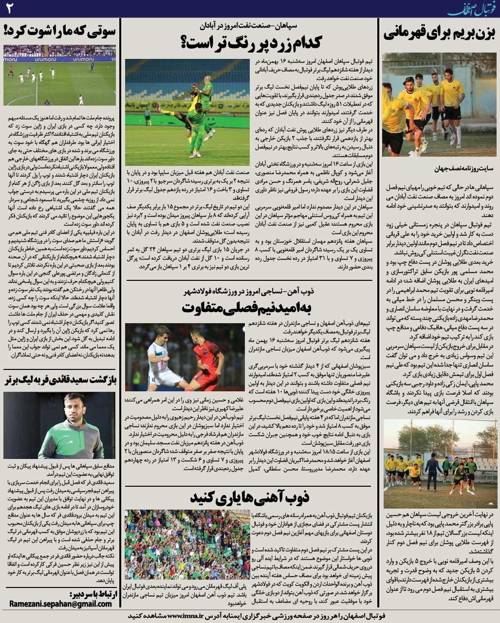شماره129 روزنامه الکترونیک فوتبال اصفهان سه شنبه 16بهمن 97 روزنامه الکترونیک فوتبال اصفهان سه شنبه 16بهمن 97با محوریت پوشش اخبار تیم های فوتبال سپاهان و ذوب آهن منتشر شد.