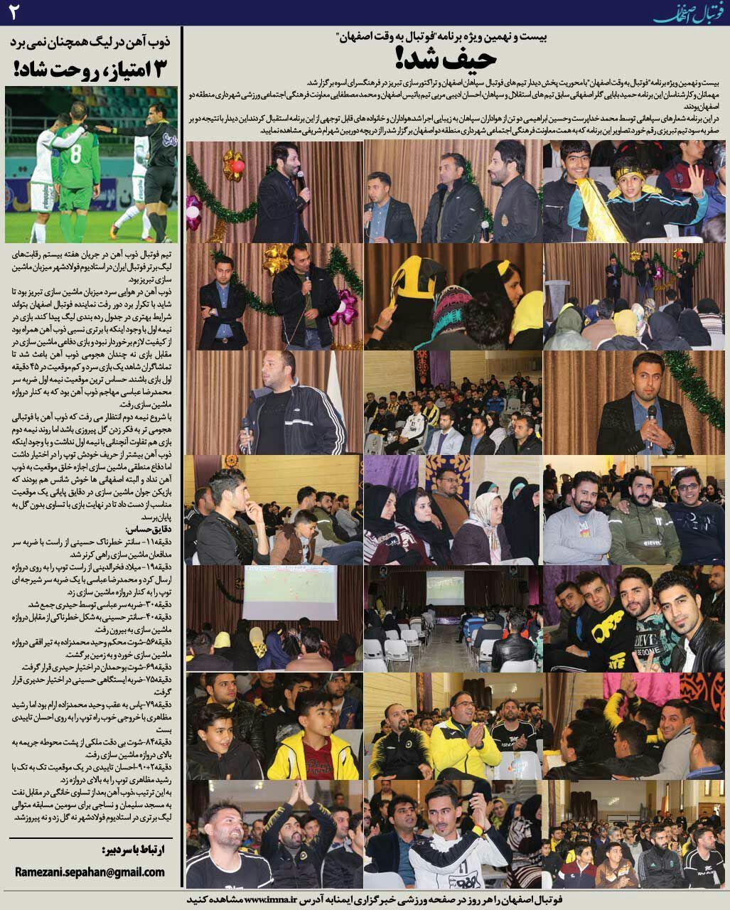 شماره148 روزنامه الکترونیک فوتبال اصفهان شنبه11 اسفند 97 روزنامه الکترونیک فوتبال اصفهان شنبه11 اسفند 97 با محوریت پوشش اخبار تیم های فوتبال سپاهان و ذوب آهن منتشر شد.