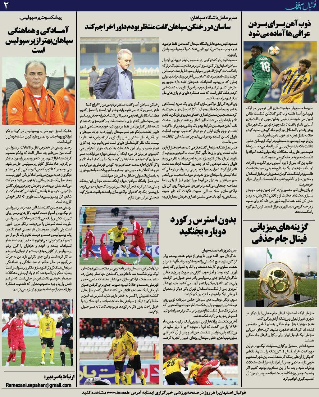 شماره149 روزنامه الکترونیک فوتبال اصفهان یکشنبه 12 اسفند 97 روزنامه الکترونیک فوتبال اصفهان یکشنبه 12 اسفند 97 با محوریت پوشش اخبار تیم های فوتبال سپاهان و ذوب آهن منتشر شد.