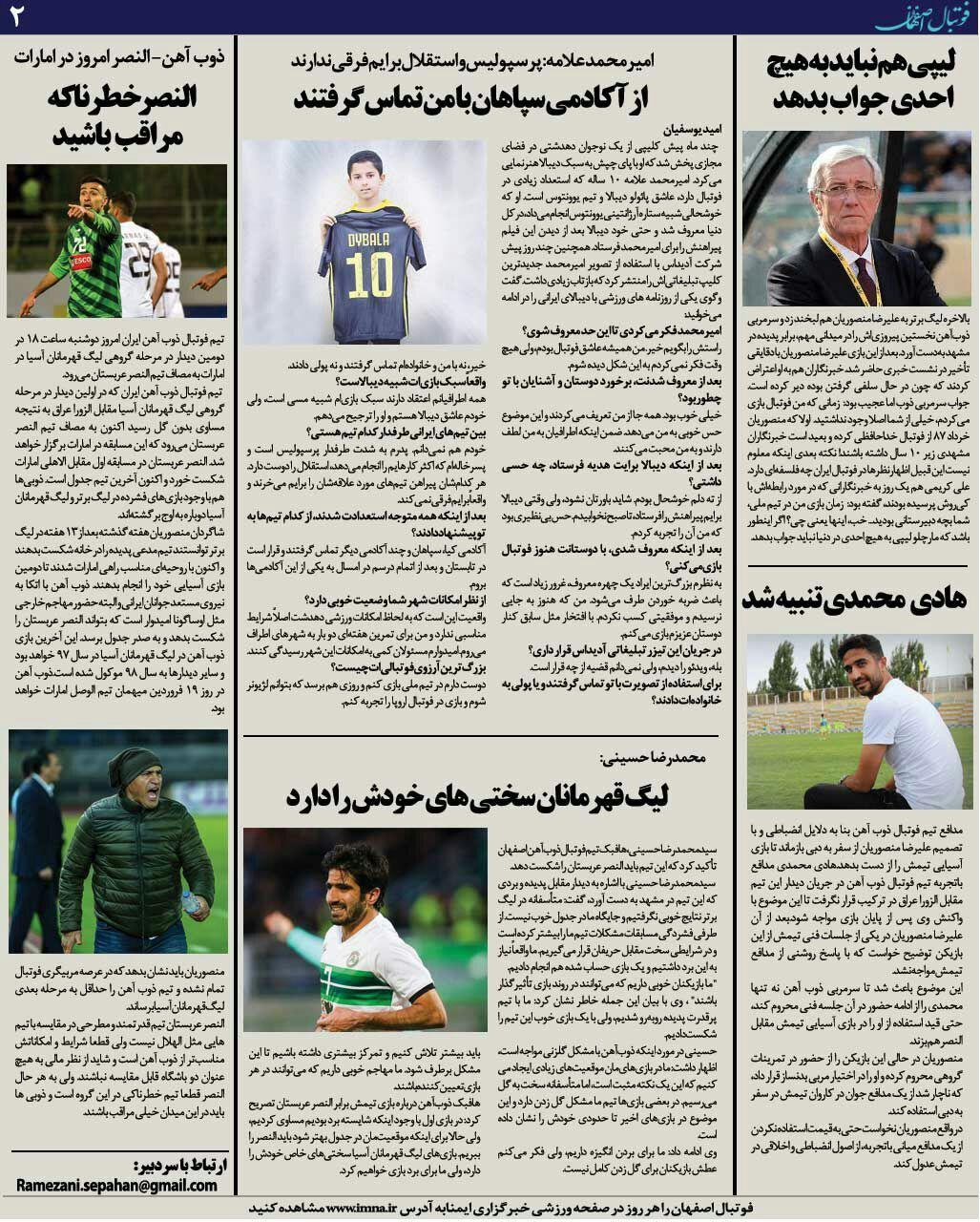 شماره156 روزنامه الکترونیک فوتبال اصفهان دوشنبه 20اسفند 97 روزنامه الکترونیک فوتبال اصفهان دوشنبه 20اسفند 97 با محوریت پوشش اخبار تیم های فوتبال سپاهان و ذوب آهن منتشر شد.