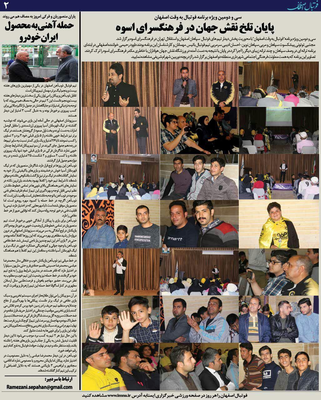 شماره 170 روزنامه الکترونیک فوتبال اصفهان شنبه 24 فروردین 98 روزنامه الکترونیک فوتبال اصفهان شنبه 24 فروردین 98 با محوریت پوشش اخبار تیم های فوتبال سپاهان و ذوب آهن منتشر شد.
