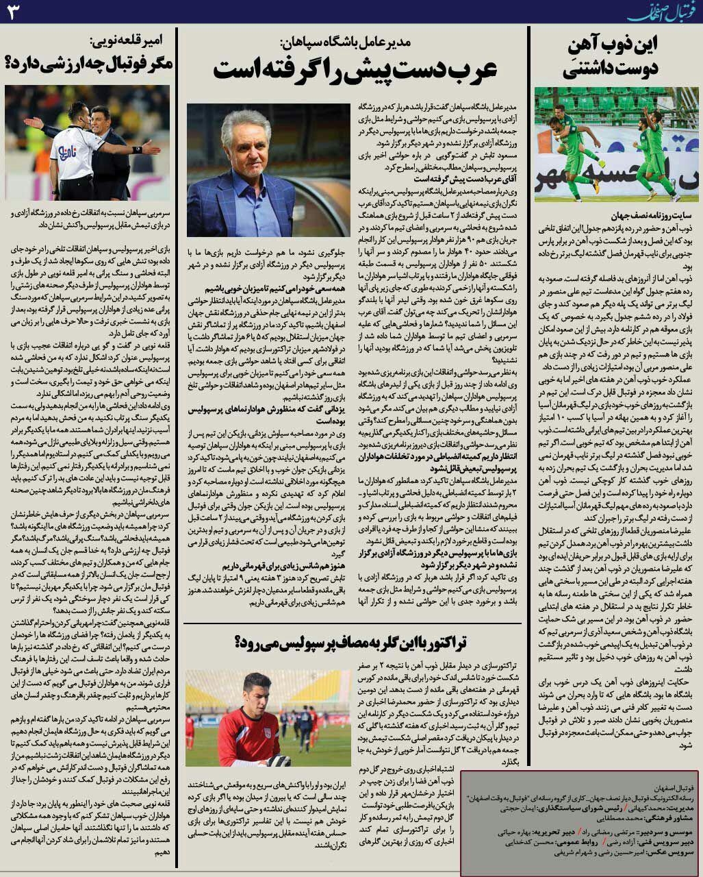 شماره182 روزنامه الکترونیک فوتبال اصفهان یکشنبه8 اردیبهشت 98 روزنامه الکترونیک فوتبال اصفهان یکشنبه8 اردیبهشت 98 با محوریت پوشش اخبار تیم های فوتبال سپاهان و ذوب آهن منتشر شد.