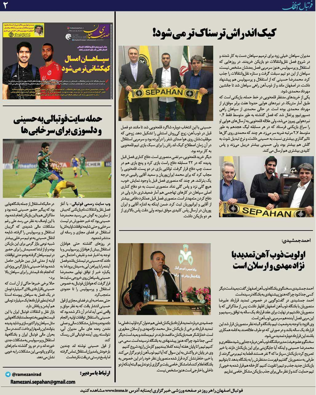شماره213 روزنامه الکترونیک فوتبال اصفهان شنبه18 خرداد 98 روزنامه الکترونیک فوتبال اصفهان شنبه18 خرداد 98 با محوریت پوشش اخبار تیم های فوتبال سپاهان و ذوب آهن منتشر شد.