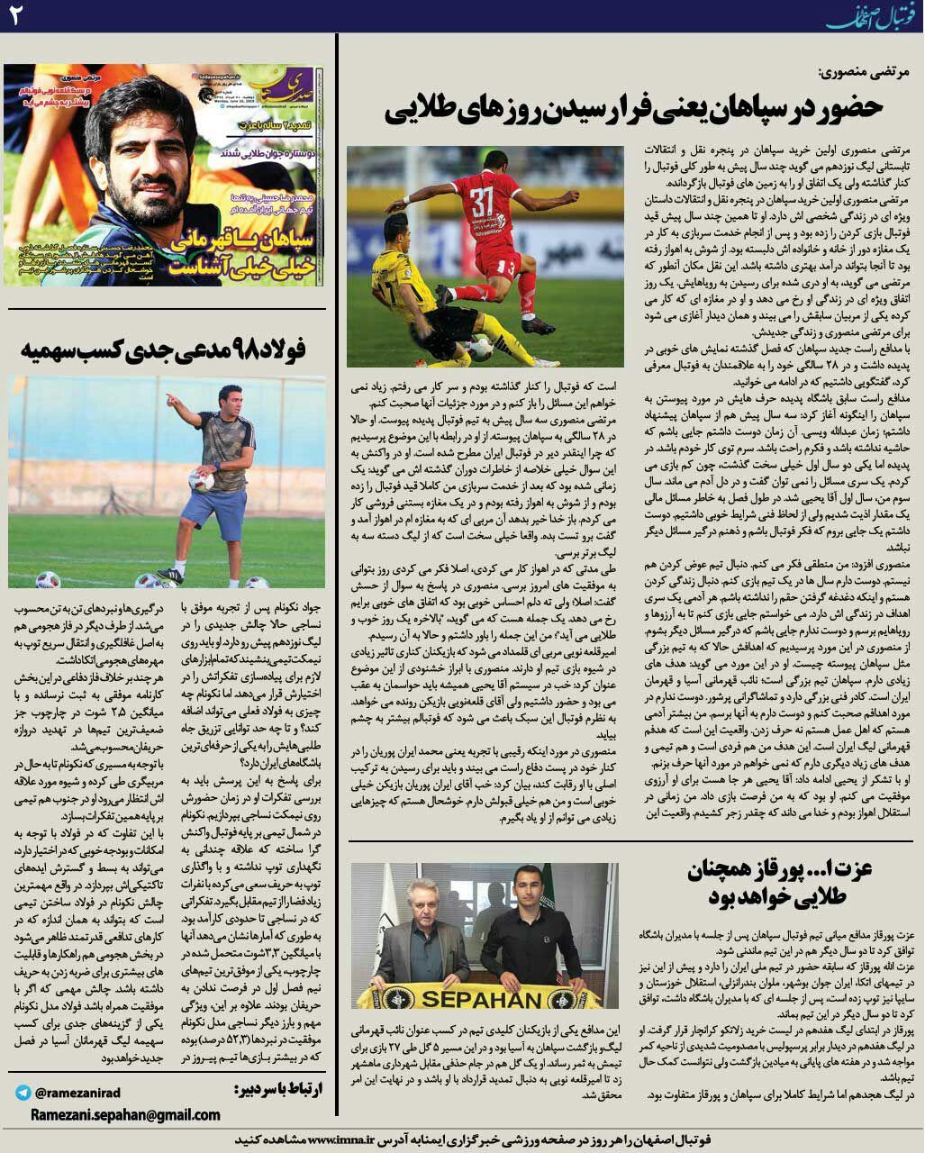 شماره215 روزنامه الکترونیک فوتبال اصفهان دوشنبه20 خرداد 98 روزنامه الکترونیک فوتبال اصفهان دوشنبه20 خرداد 98 با محوریت پوشش اخبار تیم های فوتبال سپاهان و ذوب آهن منتشر شد.