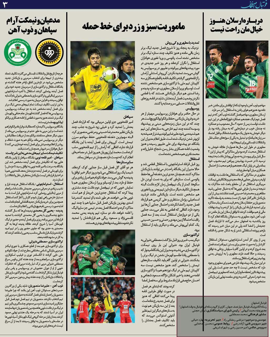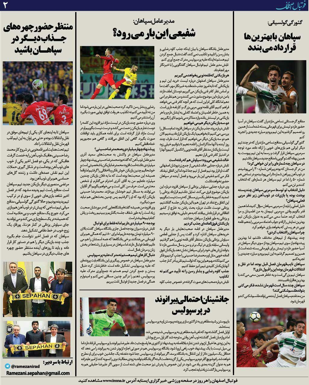 شماره219 روزنامه الکترونیک فوتبال اصفهان شنبه25 خرداد 98 روزنامه الکترونیک فوتبال اصفهان شنبه25 خرداد 98 با محوریت پوشش اخبار تیم های فوتبال سپاهان و ذوب آهن منتشر شد.