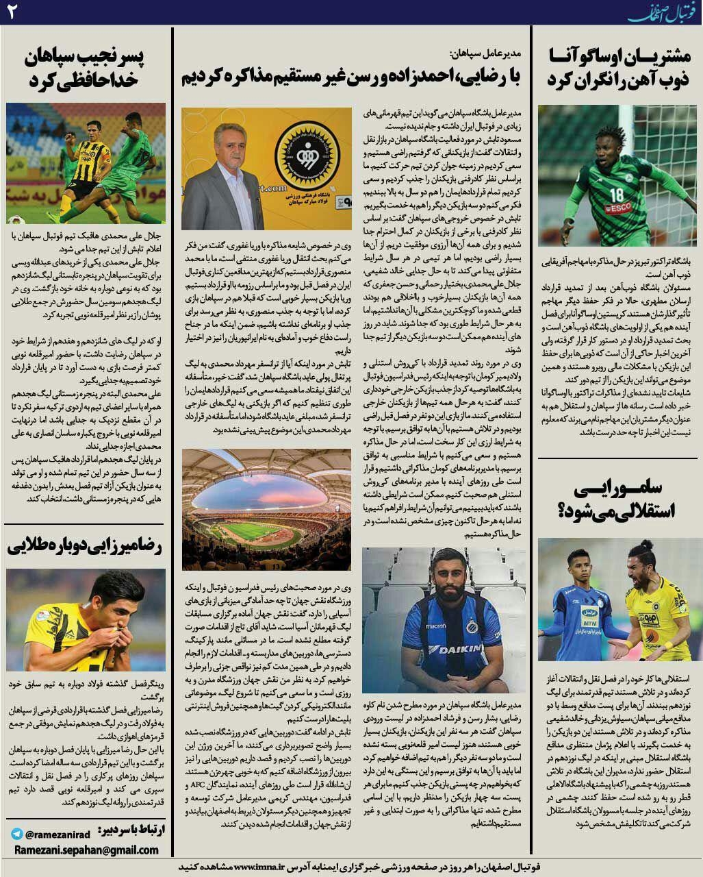 َشماره223 روزنامه الکترونیک فوتبال اصفهان چهار شنبه29 خرداد 98 روزنامه الکترونیک فوتبال اصفهان چهار شنبه29 خرداد 98 با محوریت پوشش اخبار تیم های فوتبال سپاهان و ذوب آهن منتشر شد.