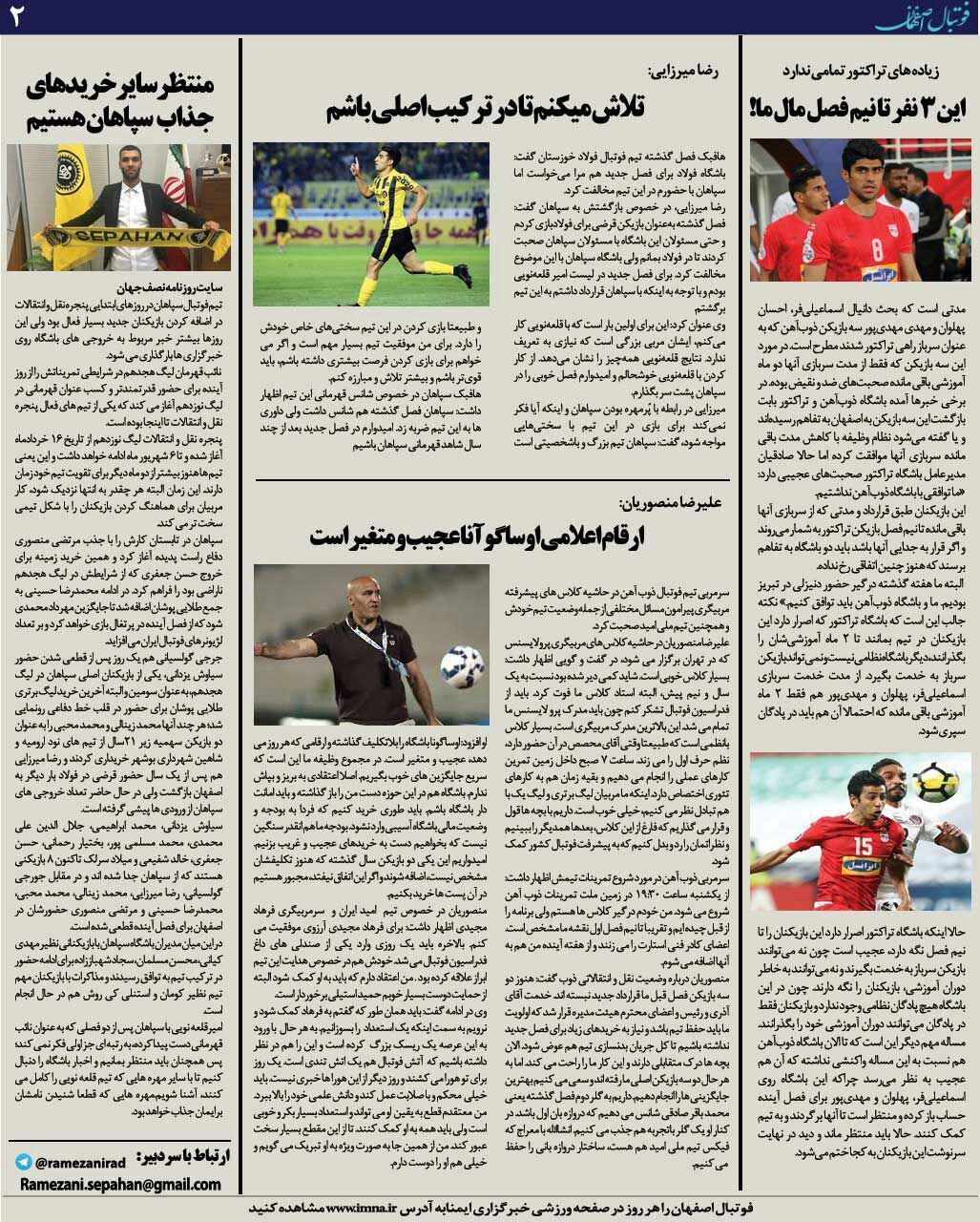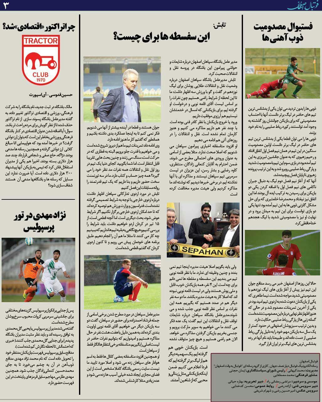 شماره226 روزنامه الکترونیک فوتبال اصفهان يكشنبه 2 تير 98 روزنامه الکترونیک فوتبال اصفهان يكشنبه 2تير 98 با محوریت پوشش اخبار تیم های فوتبال سپاهان و ذوب آهن منتشر شد.