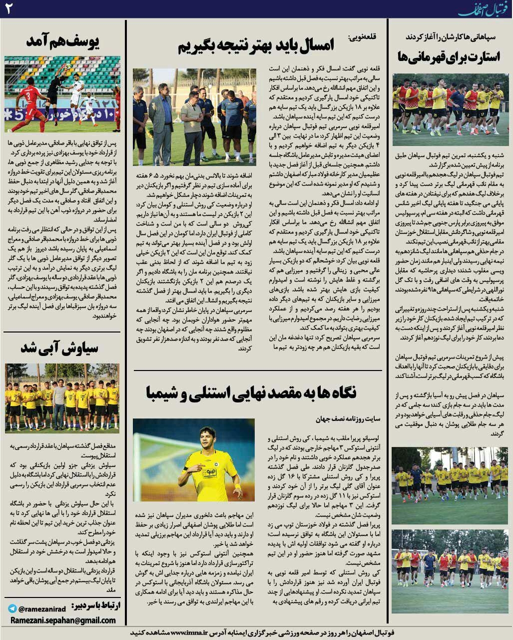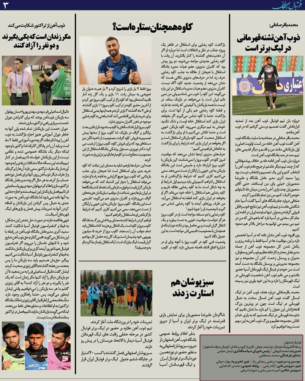 شماره227 روزنامه الکترونیک فوتبال اصفهان دوشنبه 3تير 98 روزنامه الکترونیک فوتبال اصفهان دوشنبه 3تير 98 با محوریت پوشش اخبار تیم های فوتبال سپاهان و ذوب آهن منتشر شد.