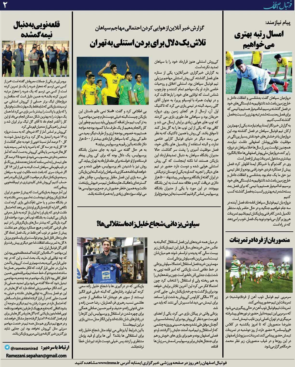 شماره231 روزنامه الکترونیک فوتبال اصفهان يكشنبه9تير 98 روزنامه الکترونیک فوتبال اصفهان يكشنبه9تير 98 با محوریت پوشش اخبار تیم های فوتبال سپاهان و ذوب آهن منتشر شد.