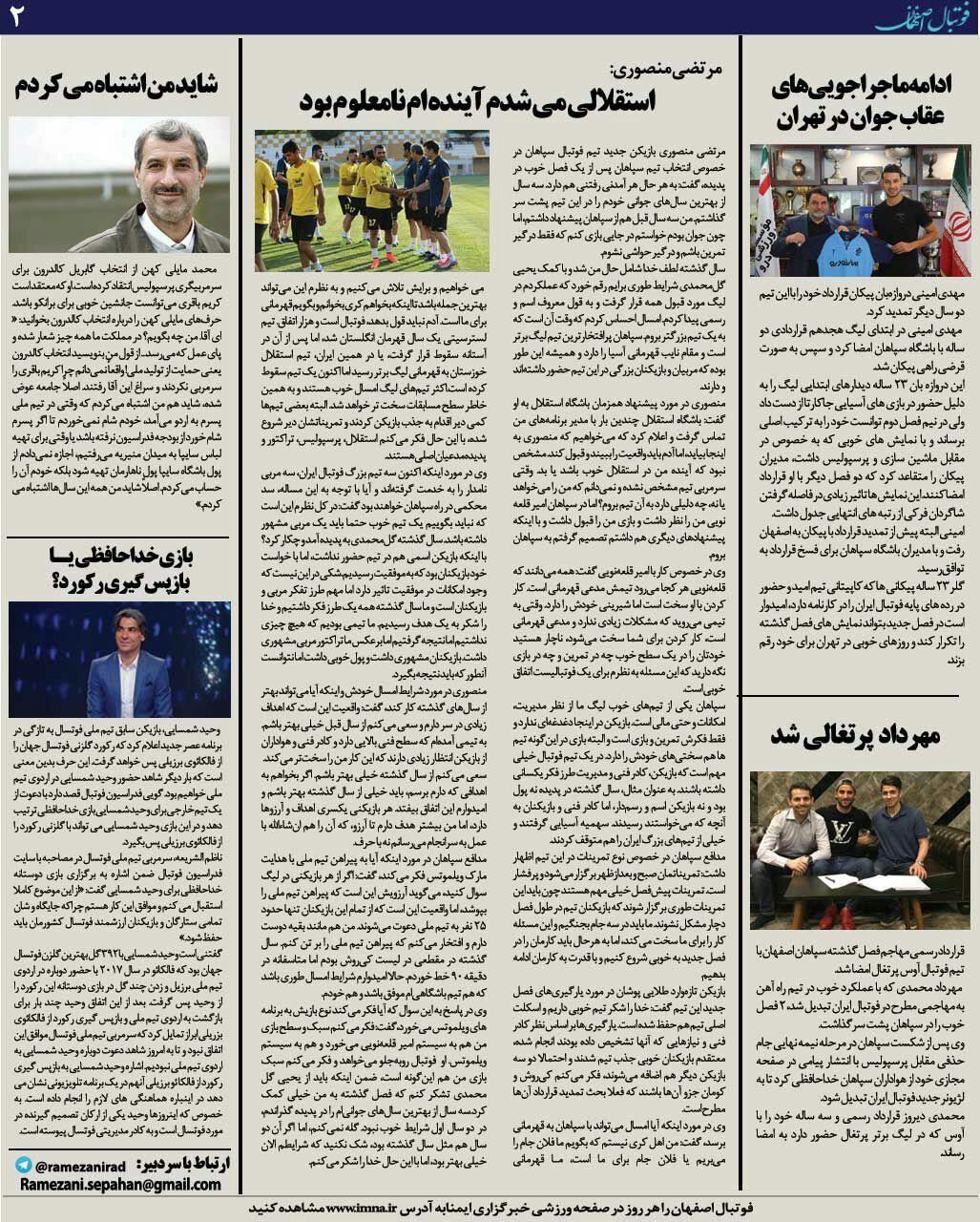 شماره234 روزنامه الکترونیک فوتبال اصفهان چهارشنبه 12تير 98 روزنامه الکترونیک فوتبال اصفهان چهارشنبه 12تير 98 با محوریت پوشش اخبار تیم های فوتبال سپاهان و ذوب آهن منتشر شد.
