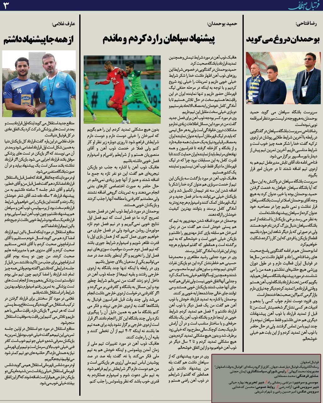 شماره253 روزنامه الکترونیک فوتبال اصفهان پنجشنبه3مرداد 98 روزنامه الکترونیک فوتبال اصفهان پنجشنبه3مرداد 98 با محوریت پوشش اخبار تیم های فوتبال سپاهان و ذوب آهن منتشر شد.