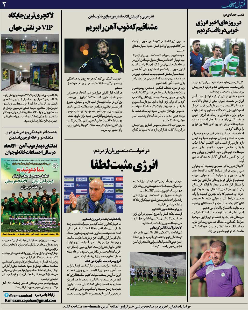 شماره262 روزنامه الکترونیک فوتبال اصفهان دوشنبه14 مرداد 98 روزنامه الکترونیک فوتبال اصفهان دوشنبه14 مرداد 98 با محوریت پوشش اخبار تیم های فوتبال سپاهان و ذوب آهن منتشر شد.