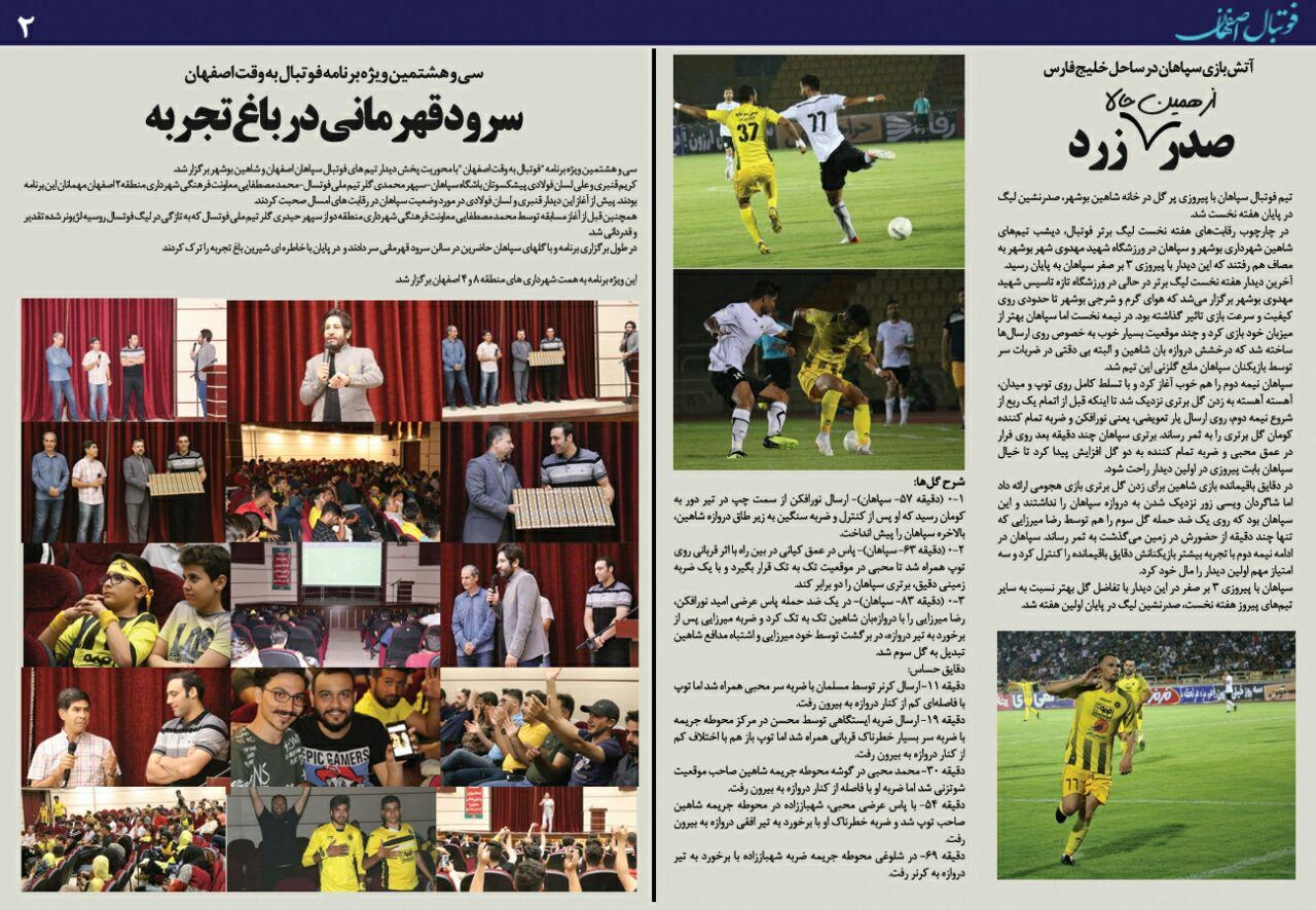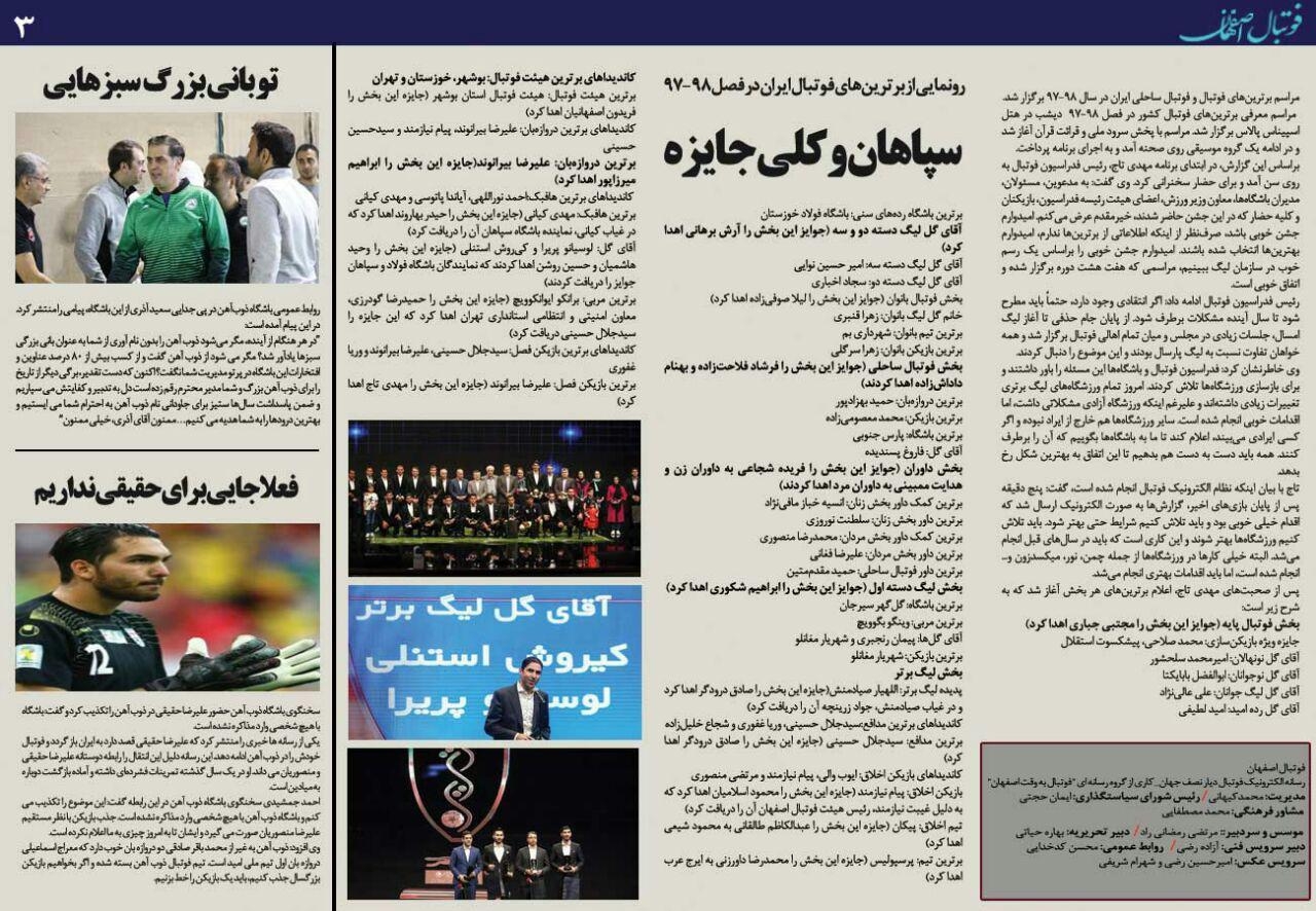 شماره277 روزنامه الکترونیک فوتبال اصفهان يكشنبه 3 شهريور 98 روزنامه الکترونیک فوتبال اصفهان يكشنبه 3 شهريور 98 با محوریت پوشش اخبار تیم های فوتبال سپاهان و ذوب آهن منتشر شد.