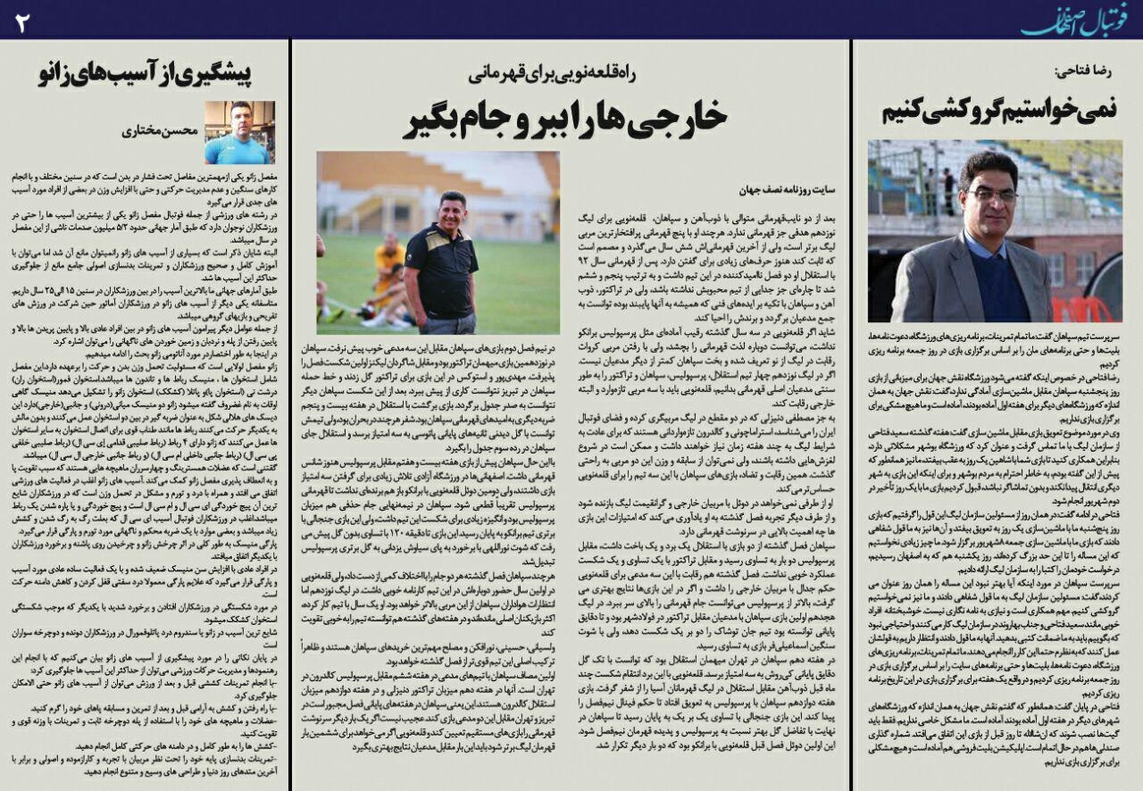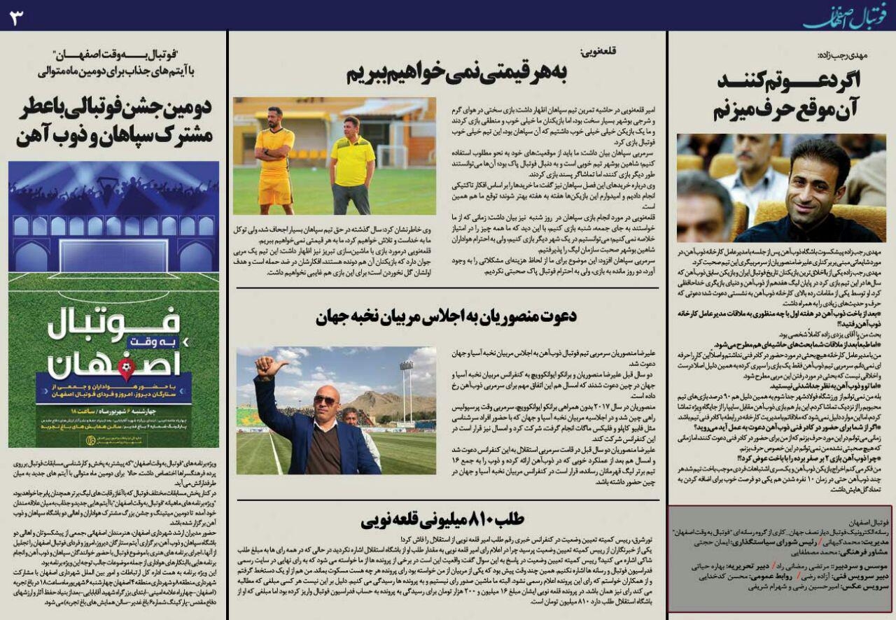 شماره280 روزنامه الکترونیک فوتبال اصفهان چهارشنبه 6شهريور 98 روزنامه الکترونیک فوتبال اصفهان چهارشنبه 6شهريور 98 با محوریت پوشش اخبار تیم های فوتبال سپاهان و ذوب آهن منتشر شد.