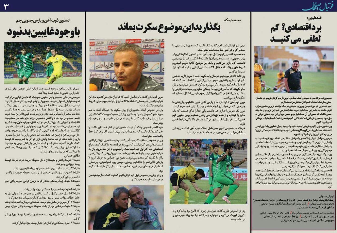 شماره282 روزنامه الکترونیک فوتبال اصفهان شنبه 9شهريور 98 روزنامه الکترونیک فوتبال اصفهان شنبه 9شهريور 98 با محوریت پوشش اخبار تیم های فوتبال سپاهان و ذوب آهن منتشر شد.