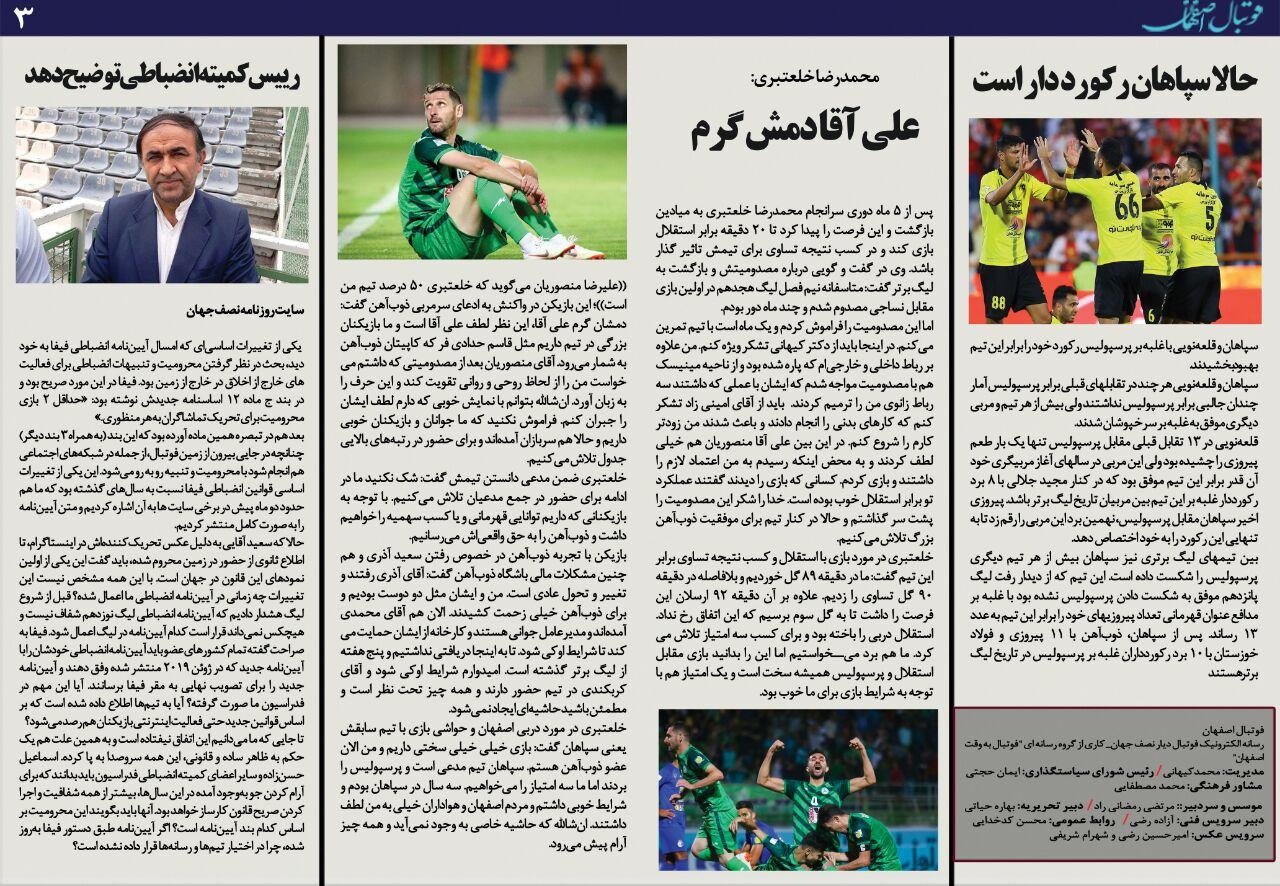 شماره304 روزنامه الکترونیک فوتبال اصفهان یکشنبه 7مهر 98 روزنامه الکترونیک فوتبال اصفهان یکشنبه 7مهر 98 با محوریت پوشش اخبار تیم های فوتبال سپاهان و ذوب آهن منتشر شد.