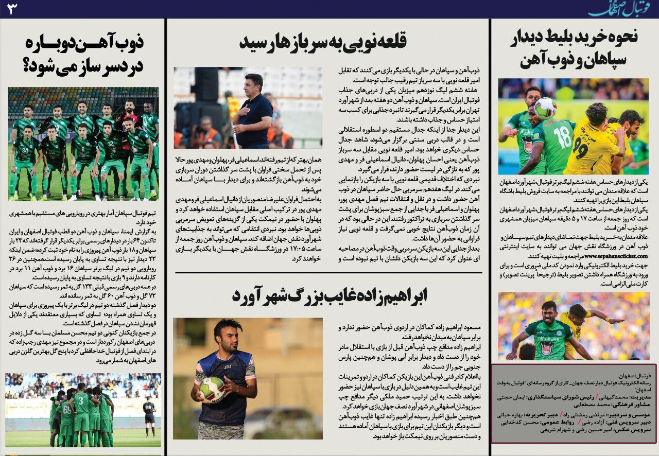 شماره308 روزنامه الکترونیک فوتبال اصفهان پنجشنبه 11 مهر 98 روزنامه الکترونیک فوتبال اصفهان پنجشنبه 11 مهر 98 با محوریت پوشش اخبار تیم های فوتبال سپاهان و ذوب آهن منتشر شد.
