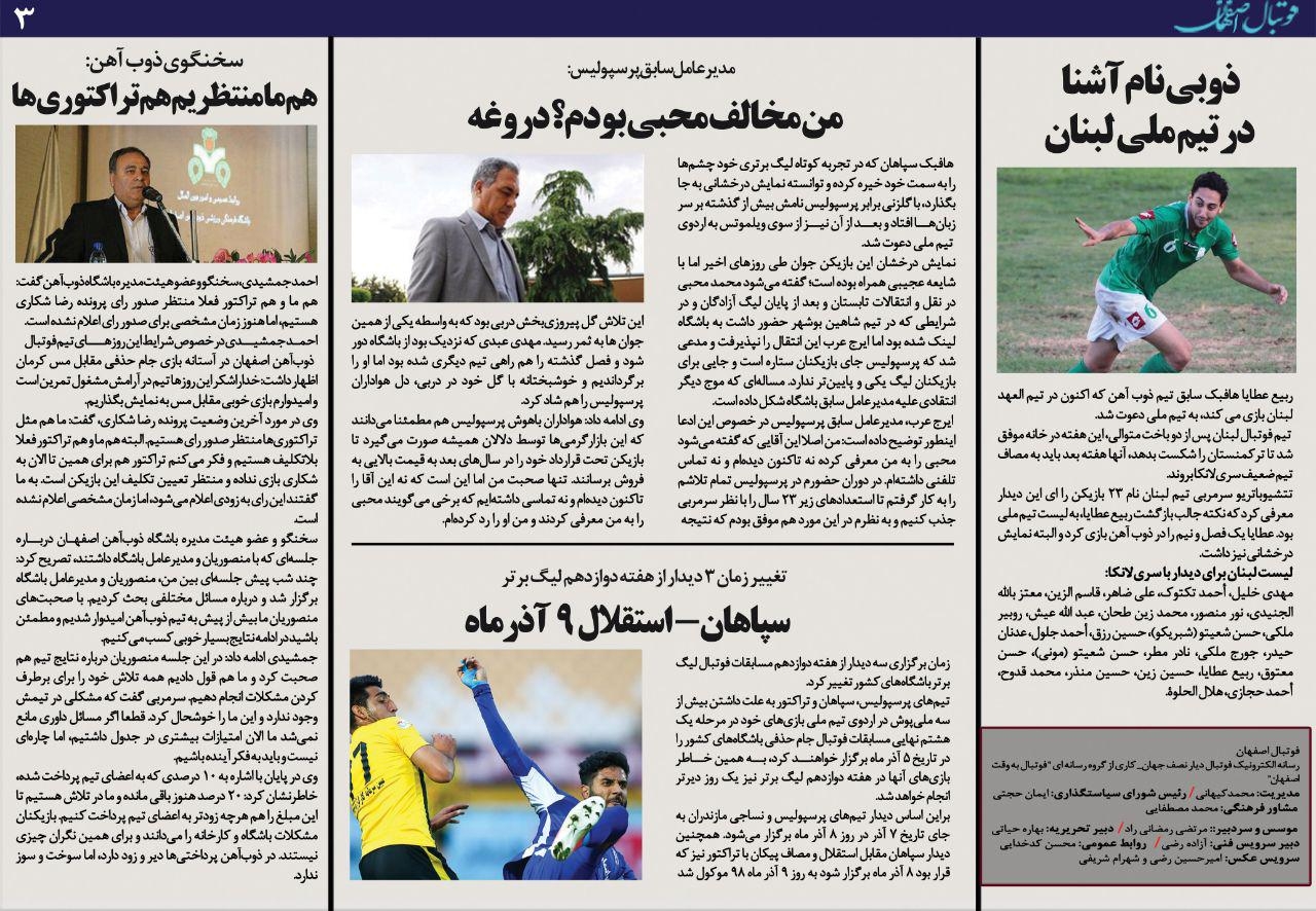 شماره316 روزنامه الکترونیک فوتبال اصفهان یکشنبه21 مهر 98 روزنامه الکترونیک فوتبال اصفهان یکشنبه21 مهر 98 با محوریت پوشش اخبار تیم های فوتبال سپاهان و ذوب آهن منتشر شد.