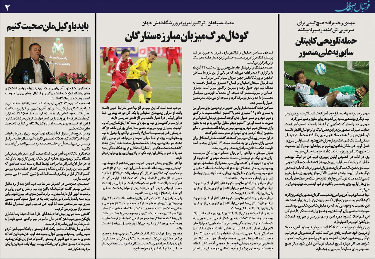 َشماره332 روزنامه الکترونیک فوتبال اصفهان سه شنبه 14 آبان 98 روزنامه الکترونیک فوتبال اصفهان سه شنبه 14 آبان 98 با محوریت پوشش اخبار تیم های فوتبال سپاهان و ذوب آهن منتشر شد.