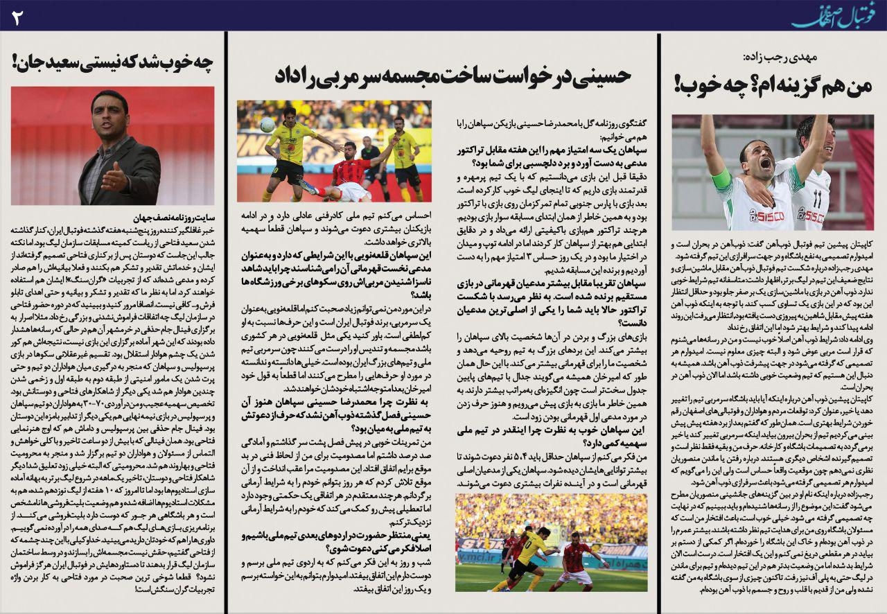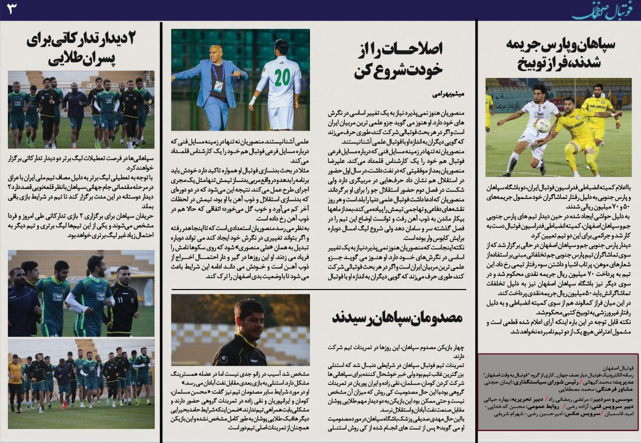 شماره336 روزنامه الکترونیک فوتبال اصفهان دوشنبه 20آبان 98 روزنامه الکترونیک فوتبال اصفهان دوشنبه 20آبان 98 با محوریت پوشش اخبار تیم های فوتبال سپاهان و ذوب آهن منتشر شد.