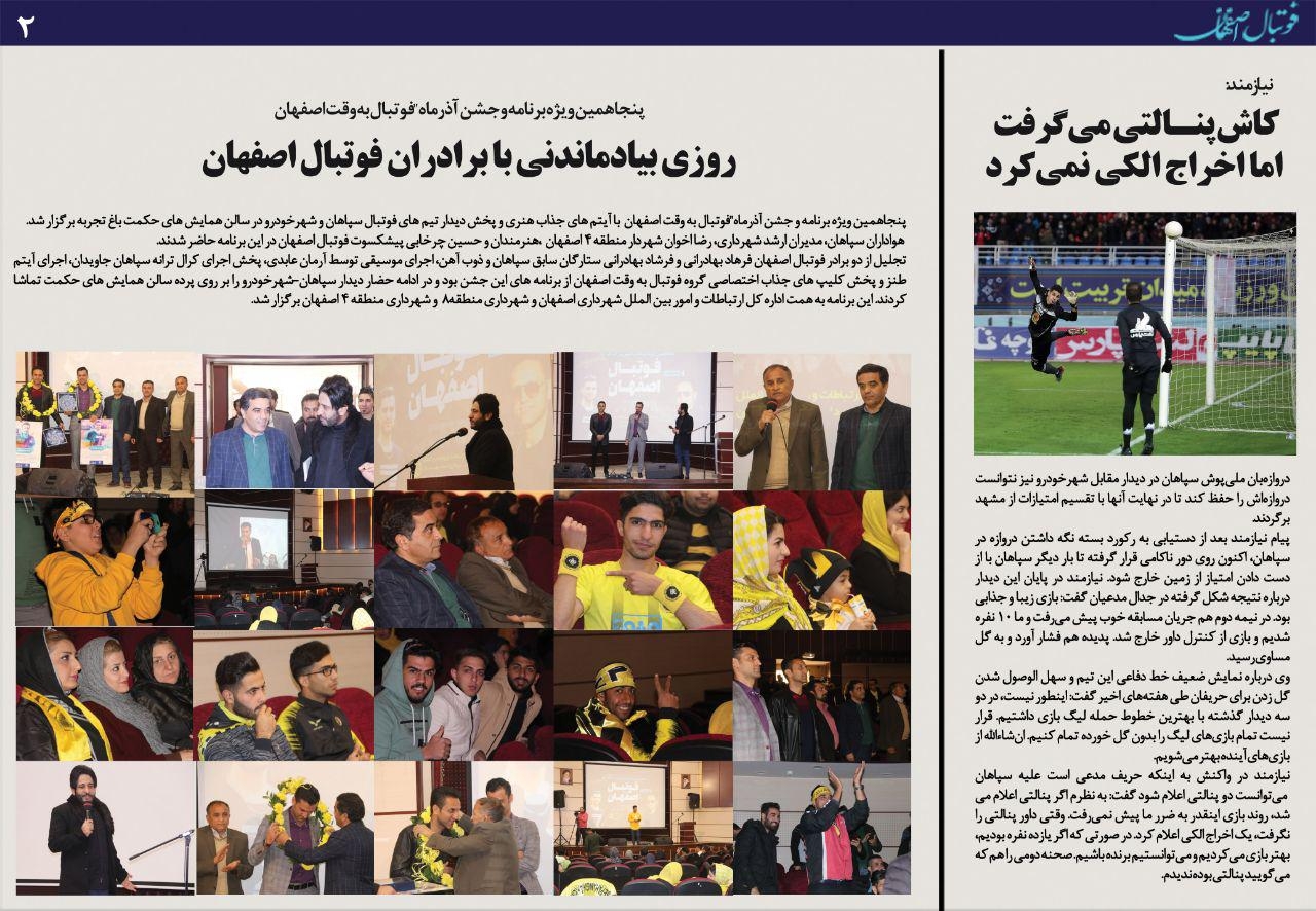 شماره350 روزنامه الکترونیک فوتبال اصفهان سه شنبه 19 آذر 98 روزنامه الکترونیک فوتبال اصفهان سه شنبه 19 آذر 98 با محوریت پوشش اخبار تیم های فوتبال سپاهان و ذوب آهن منتشر شد.
