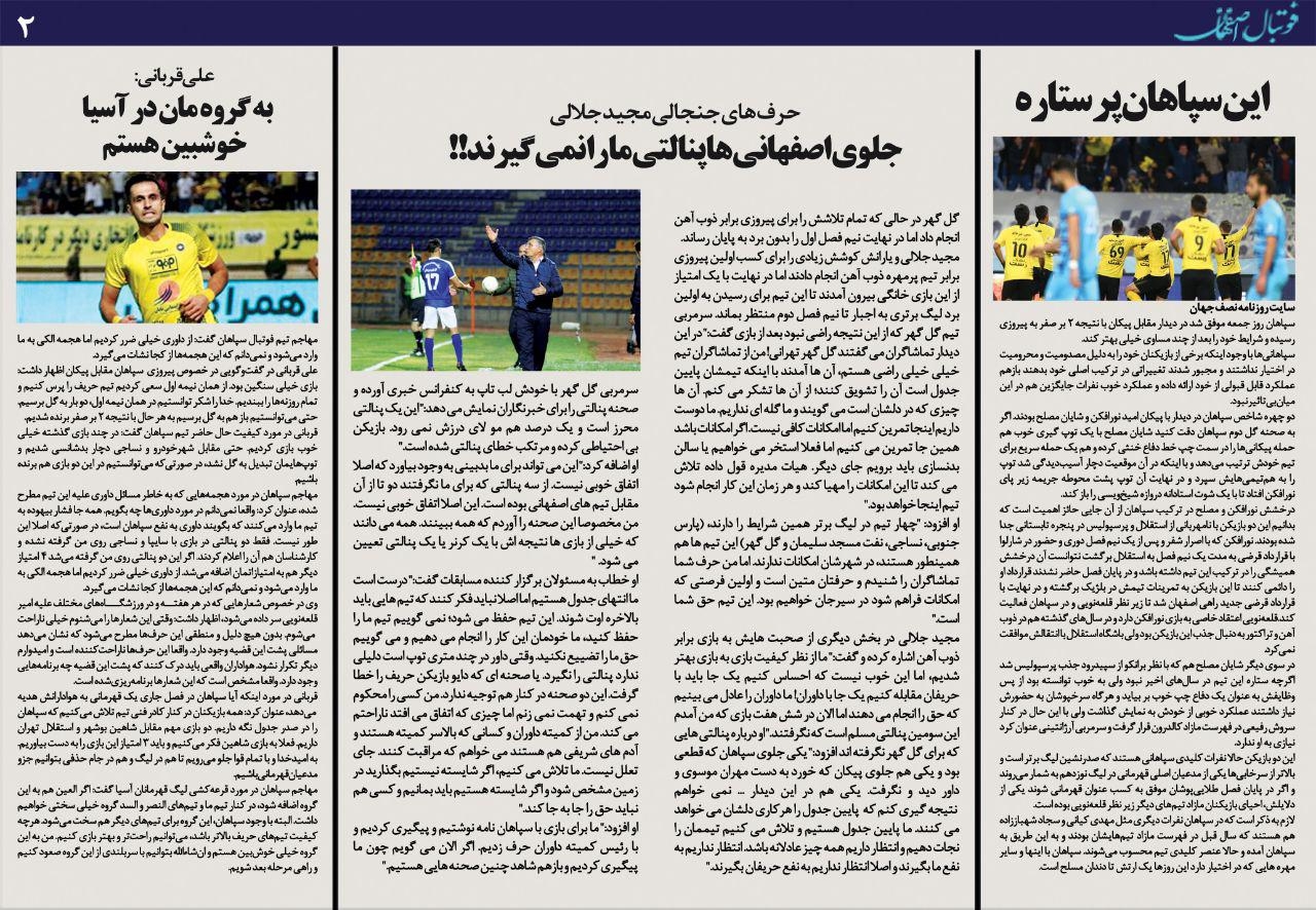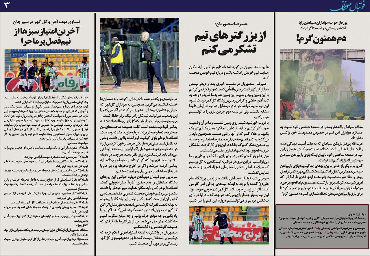 َشماره354 روزنامه الکترونیک فوتبال اصفهان یکشنبه 24 آذر 98 روزنامه الکترونیک فوتبال اصفهان یکشنبه 24 آذر 98 با محوریت پوشش اخبار تیم های فوتبال سپاهان و ذوب آهن منتشر شد.