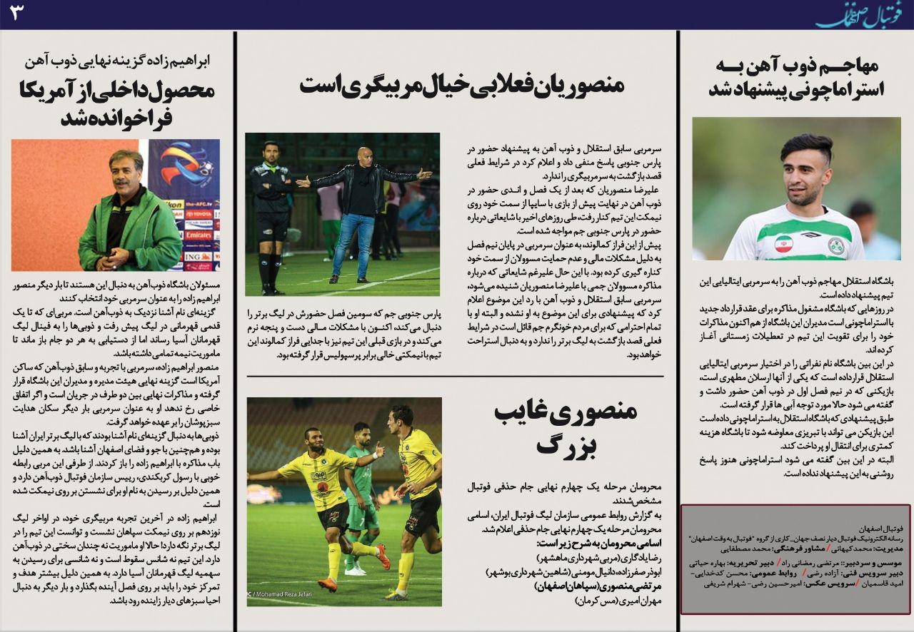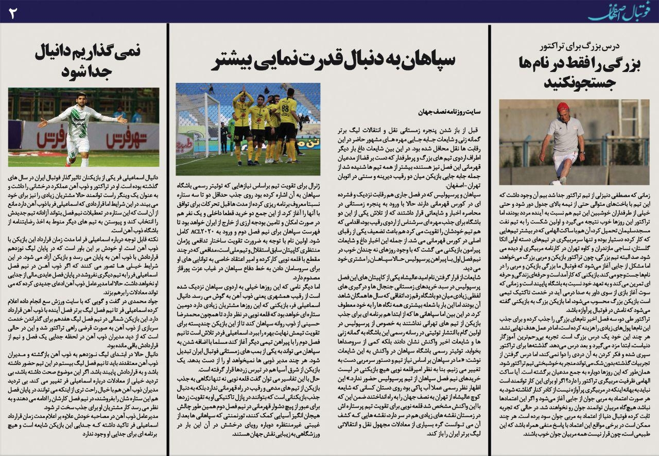 شماره 361 روزنامه الکترونیک فوتبال اصفهان دوشنبه 2 دی 98 روزنامه الکترونیک فوتبال اصفهان دوشنبه 2 دی 98 با محوریت پوشش اخبار تیم های فوتبال سپاهان و ذوب آهن منتشر شد.