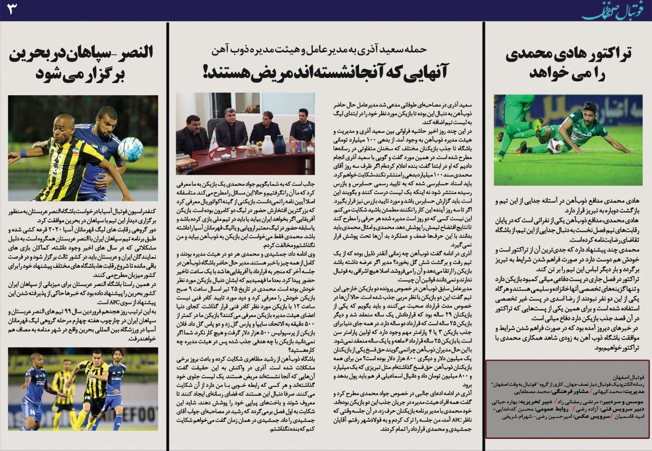 شماره 362 روزنامه الکترونیک فوتبال اصفهان سه شنبه3 دی 98 روزنامه الکترونیک فوتبال اصفهان سه شنبه3 دی 98 با محوریت پوشش اخبار تیم های فوتبال سپاهان و ذوب آهن منتشر شد.