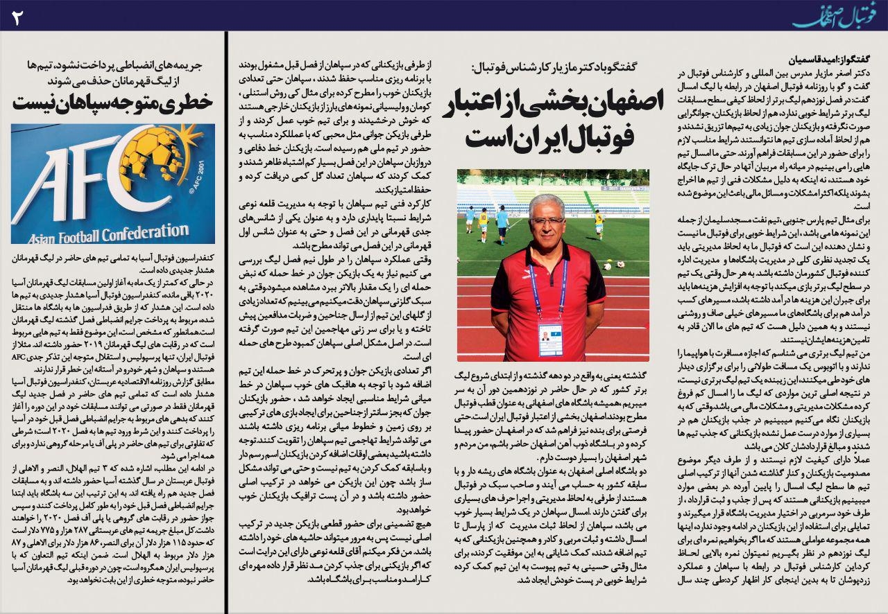 شماره 364 روزنامه الکترونیک فوتبال اصفهان پنجشنبه5دی 98 روزنامه الکترونیک فوتبال اصفهان پنجشنبه5دی 98 با محوریت پوشش اخبار تیم های فوتبال سپاهان و ذوب آهن منتشر شد.