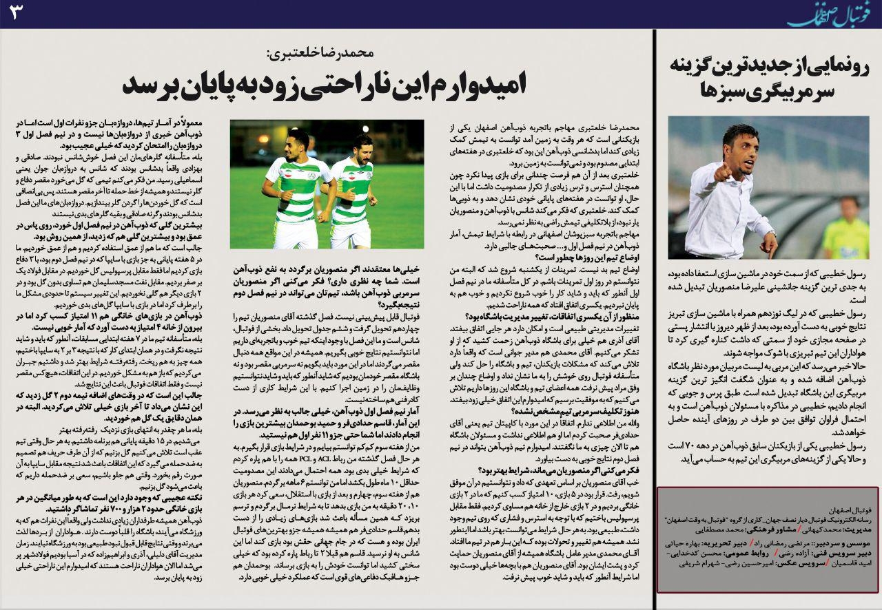 شماره 369 روزنامه الکترونیک فوتبال اصفهان چهارشنبه 11 دی 98 روزنامه الکترونیک فوتبال اصفهان چهارشنبه 11 دی 98 با محوریت پوشش اخبار تیم های فوتبال سپاهان و ذوب آهن منتشر شد.