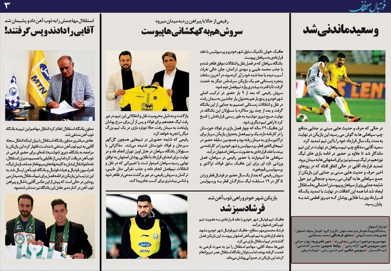 شماره 380 روزنامه الکترونیک فوتبال اصفهان سه شنبه 24 دی 98 روزنامه الکترونیک فوتبال اصفهان سه شنبه 24 دی 98 با محوریت پوشش اخبار تیم های فوتبال سپاهان و ذوب آهن منتشر شد.
