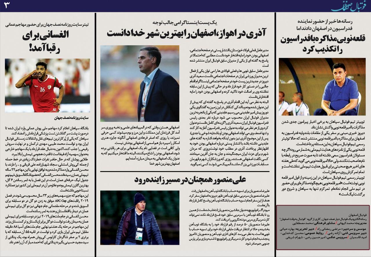 شماره 388 روزنامه الکترونیک فوتبال اصفهان پنجشنبه 3 بهمن 98 روزنامه الکترونیک فوتبال اصفهان پنجشنبه 3 بهمن 98 با محوریت پوشش اخبار تیم های فوتبال سپاهان و ذوب آهن منتشر شد.